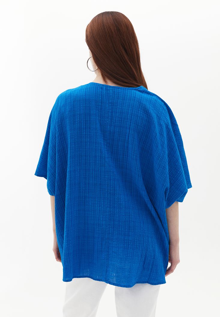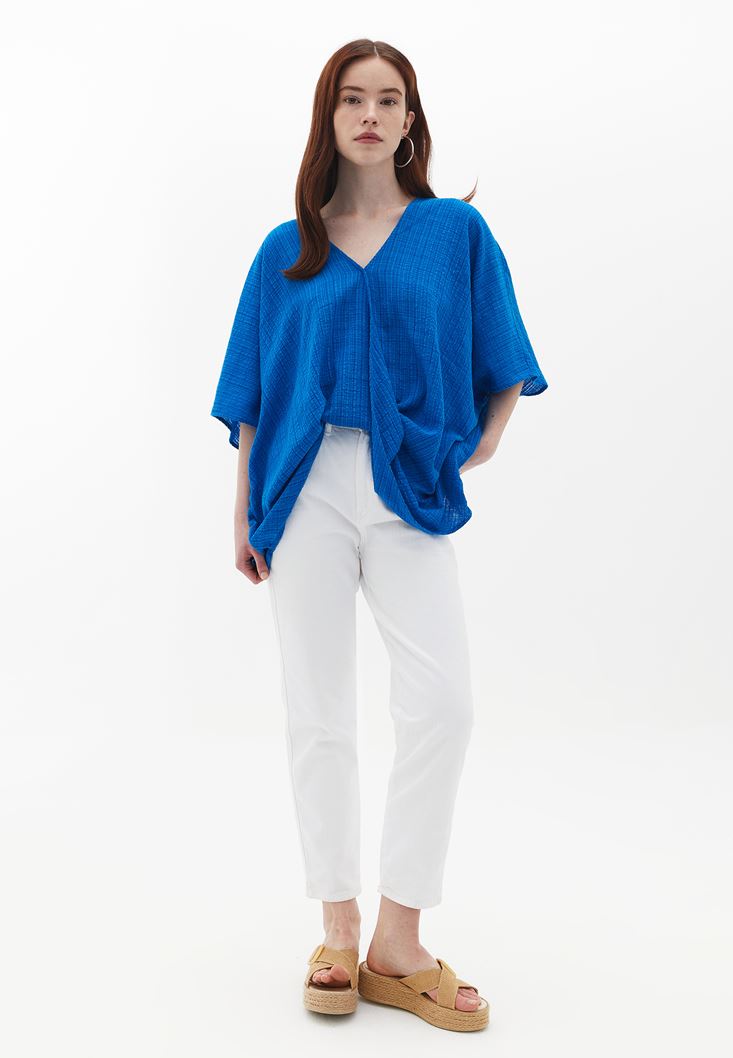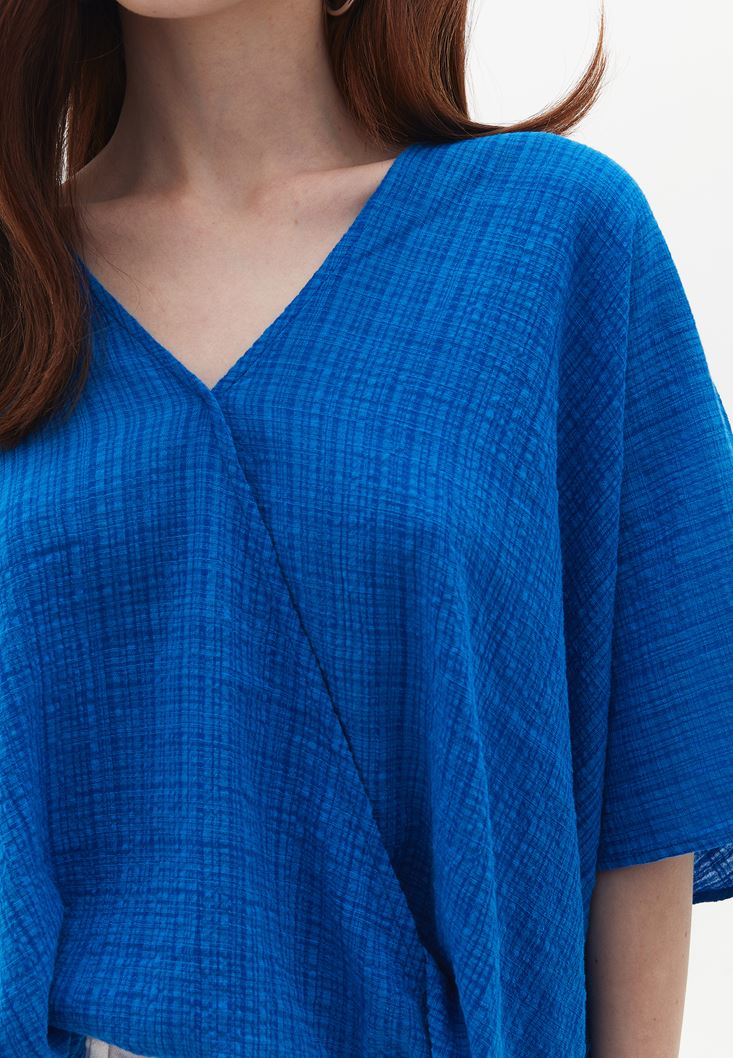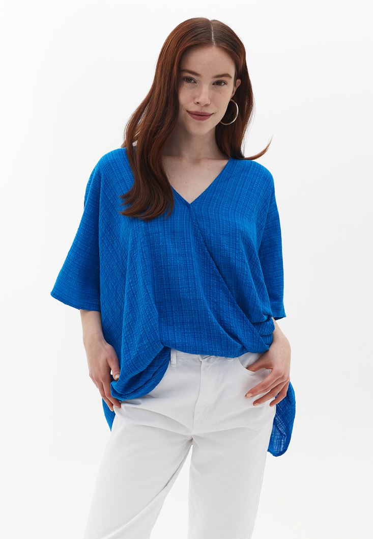 Mavi Loose-Fit Kruvaze Yaka Bluz