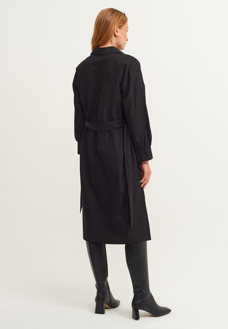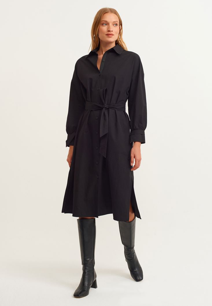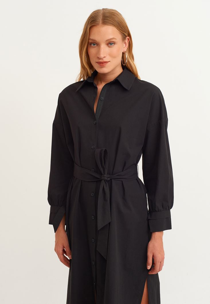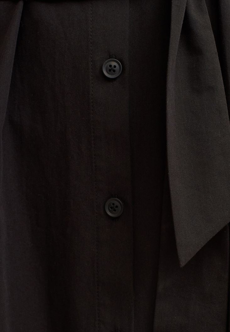 Siyah Loose-Fit Pamuklu Gömlek Elbise