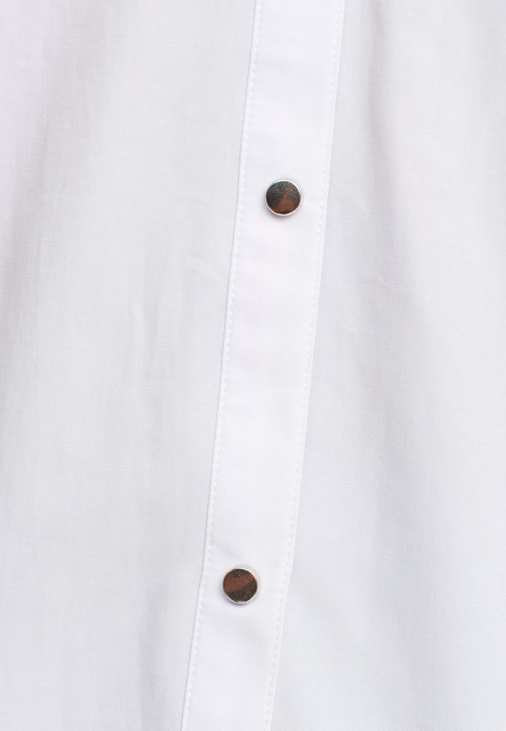 Beyaz Loose-Fit Poplin Gömlek