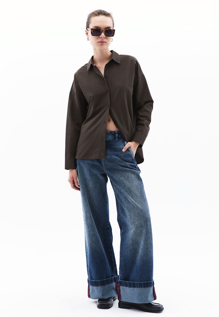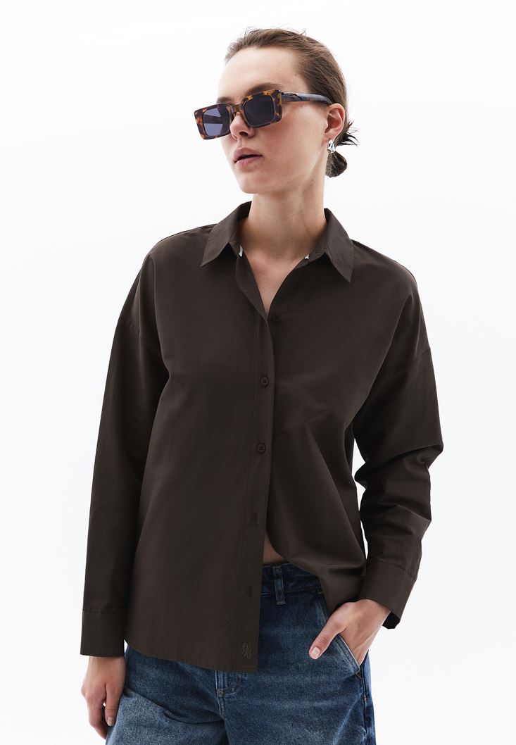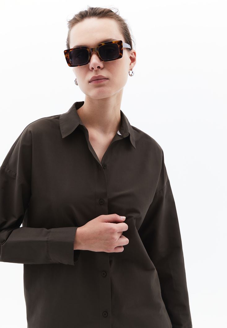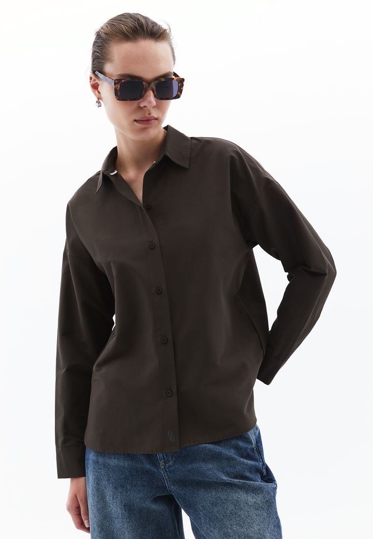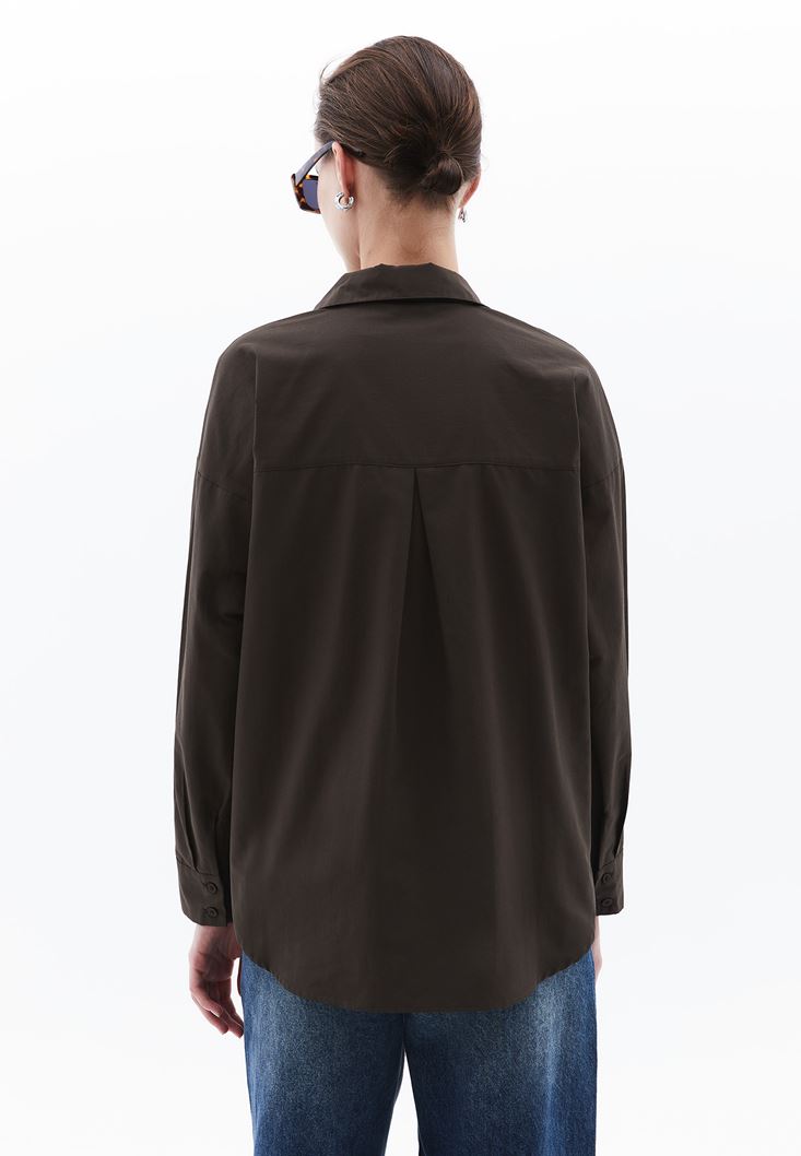 • Bayan Kahverengi Loose Fit Poplin Gömlek