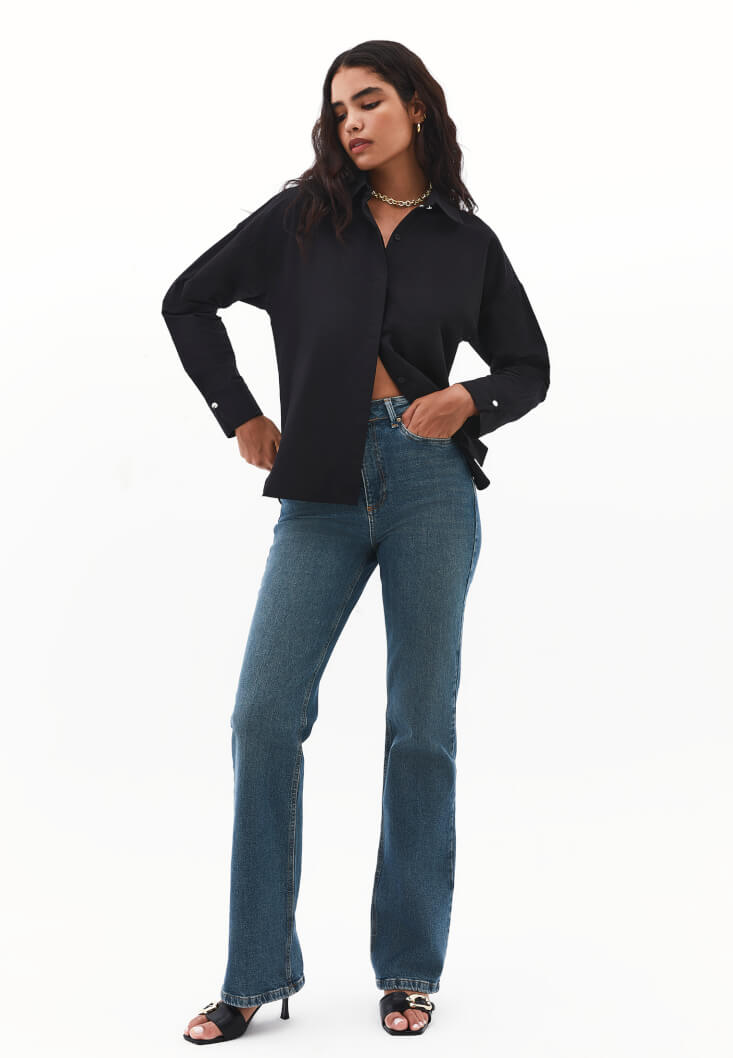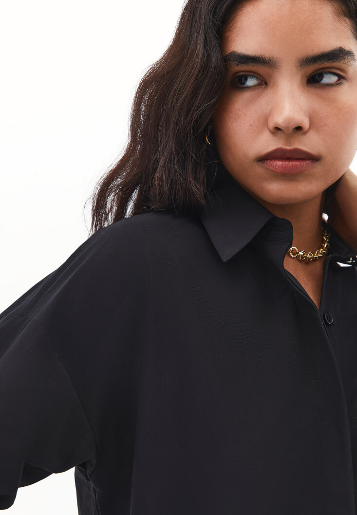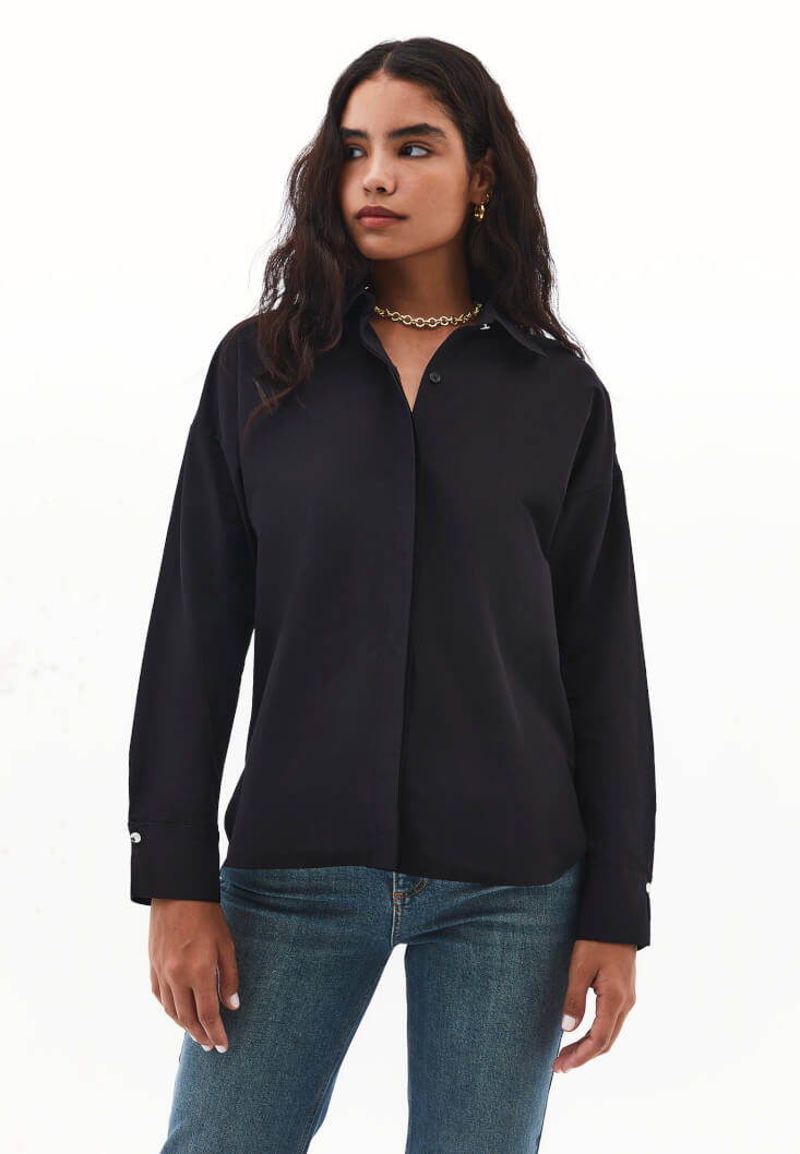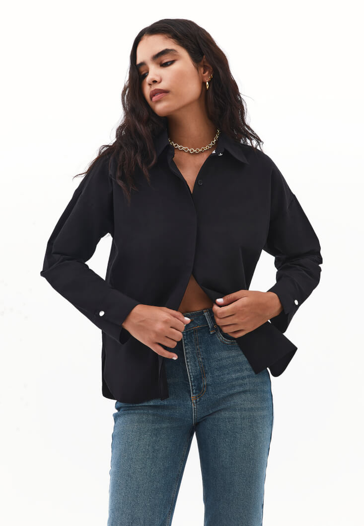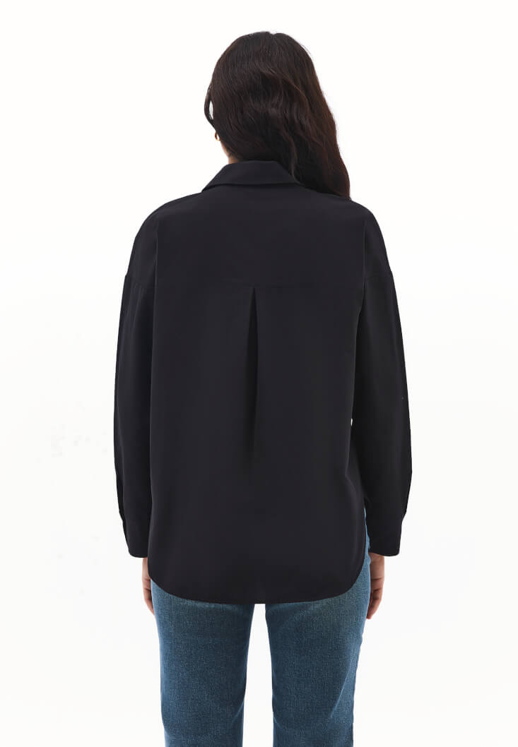 • Bayan Siyah Loose-Fit Poplin Gömlek