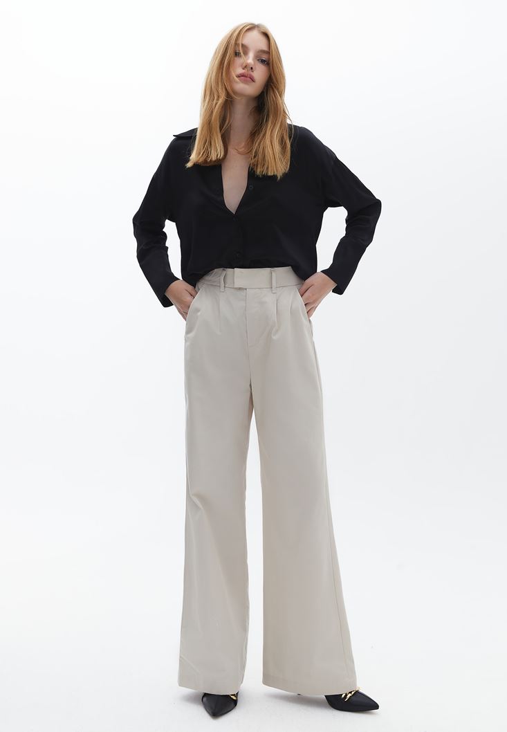 %100 viskon içerikli doku, bedenden uzak rahat fit, uzun kollu, geniş manşet tasarımlı, parlak saten doku.