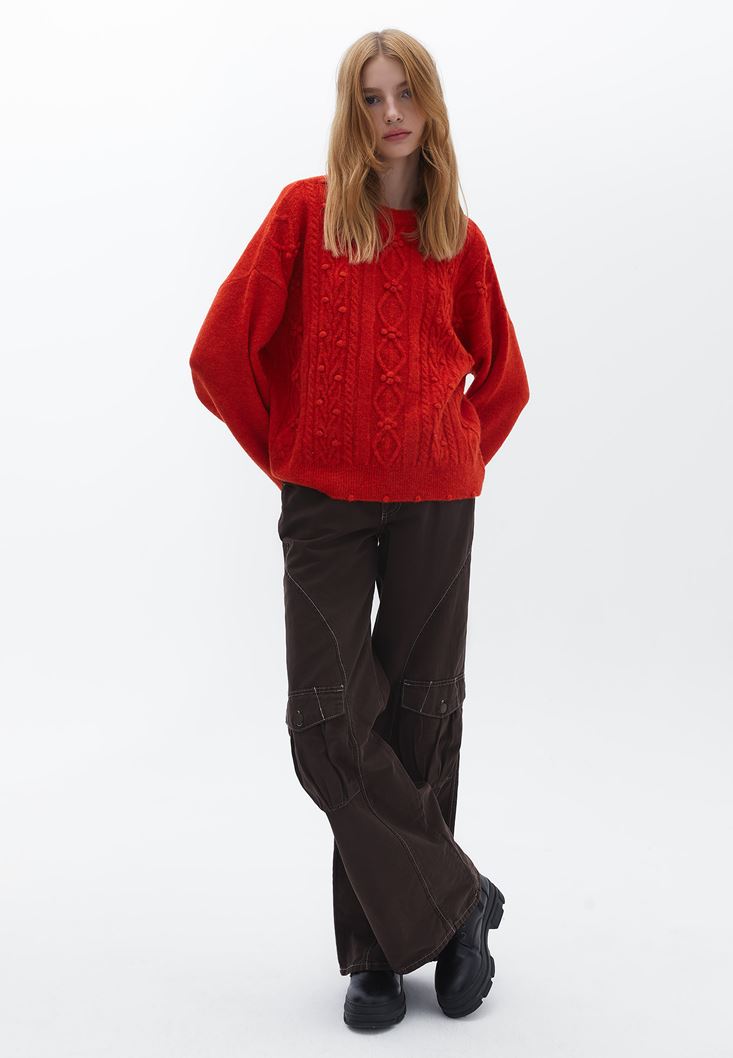 • Bayan Turuncu Loose-Fit Triko Kazak