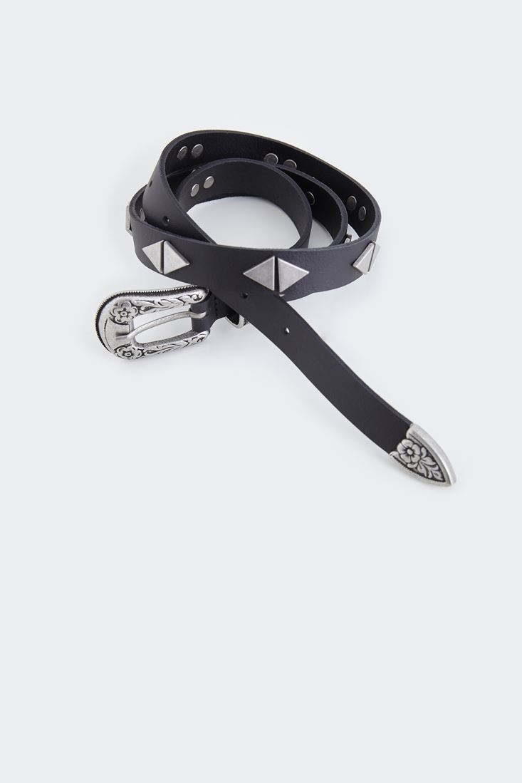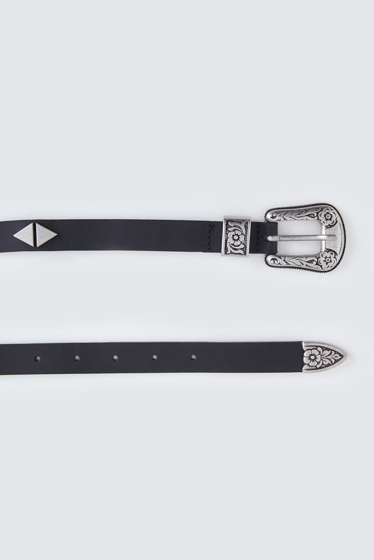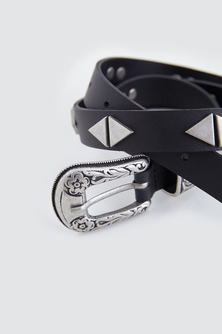 • Bayan Siyah Metal Detaylı Deri Kemer
