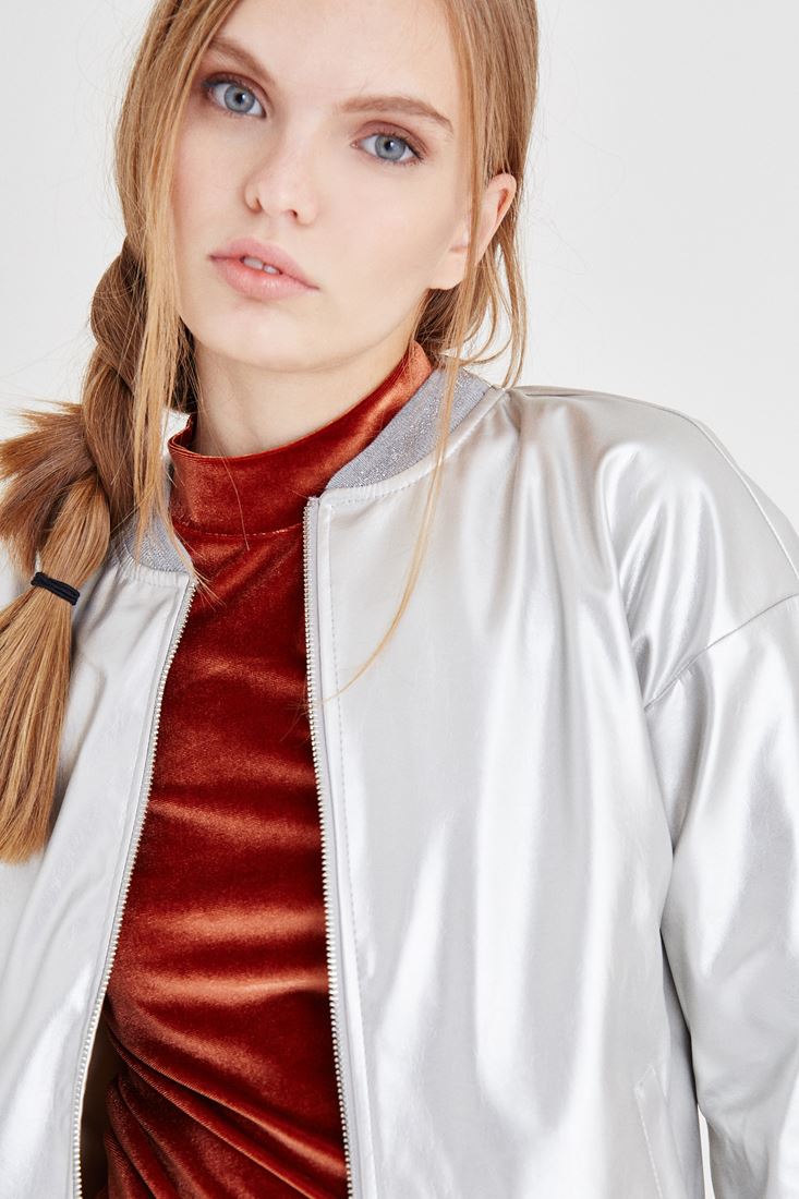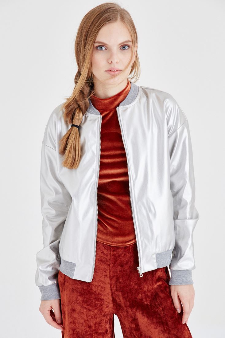 Metalik baskili ürünler bu sezonun yükselen trendi arasinda yer aliyor. Gümüs ve altin renkleri bulunan metalik bomber ceketler sokak stilinde ben buradayim diyor. Kaliteli tasarimi ile çok sevecegin bomber ceket modellerini kot pantolon modelleri ve kadife parçalarla kombinleyebilirsin.