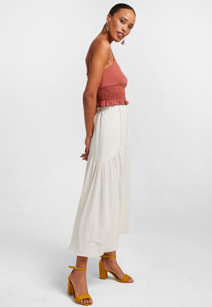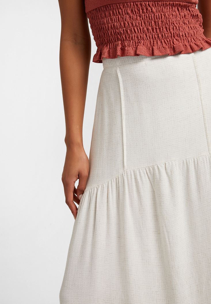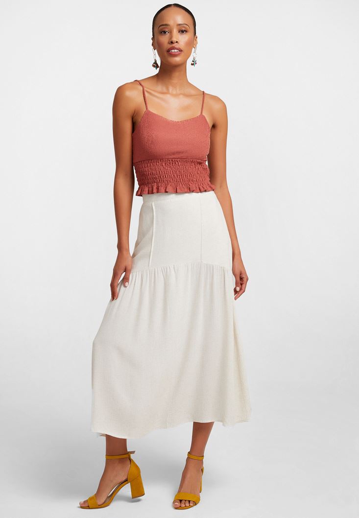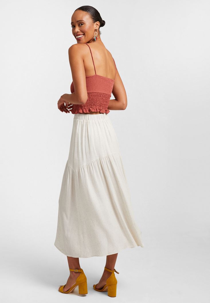 Midi Boy Etek modeli, keten ve viskon içerikli hoş dokusu ile beraber yeni sezonda sizlerle buluşuyor. Midi etek modeli, belden oturan kalıbı ve volanlı duruşu ile Oxxo'da en iyi şekilde karşınıza çıkıyor. Her sezon hareketli kombinler yapabileceğiniz midi boy etek modeli sayesinde tarzınızı dilediğiniz gibi şekillendirebilirsiniz. Crop bluzlarla veya renkli atletlerle kullanabileceğiniz midi etek modeline dolabınızda yer açabilirsiniz. Midi boy etek modeli ile oluşturacağınız zarif kombinleri kısa ceketlerle, topuklu ayakkabılarla ve askılı çantalarla rahatlıkla tamamlayabilirsiniz. Oxxo'nun zarif görünümlere ulaştıran ve farklılık içeren midi etek modelleri ile kombin çeşitliliği elde edebilirsiniz.