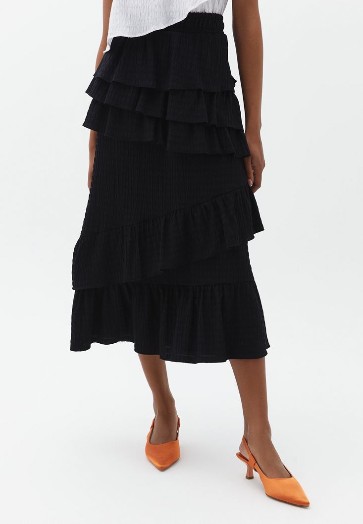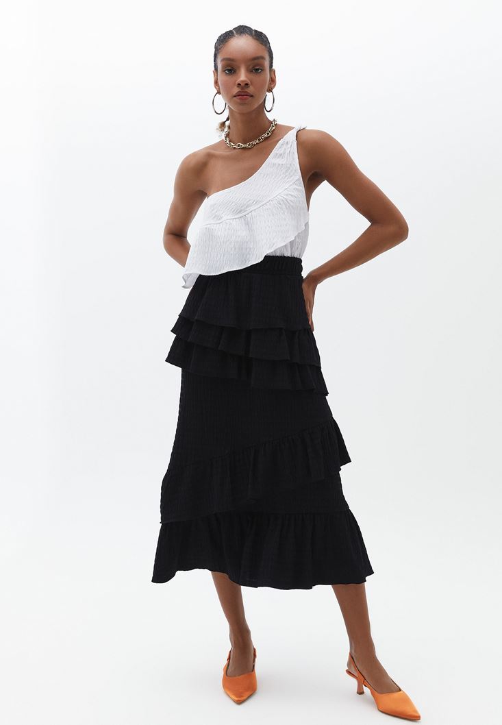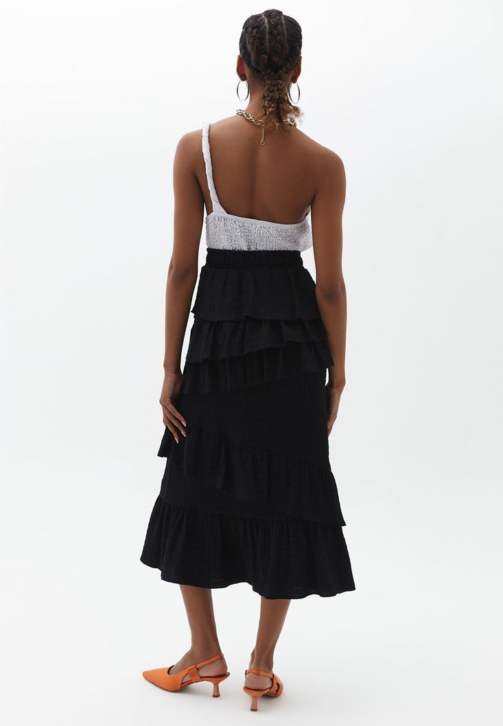 • Bayan Siyah Midi Boy Fırfırlı Etek