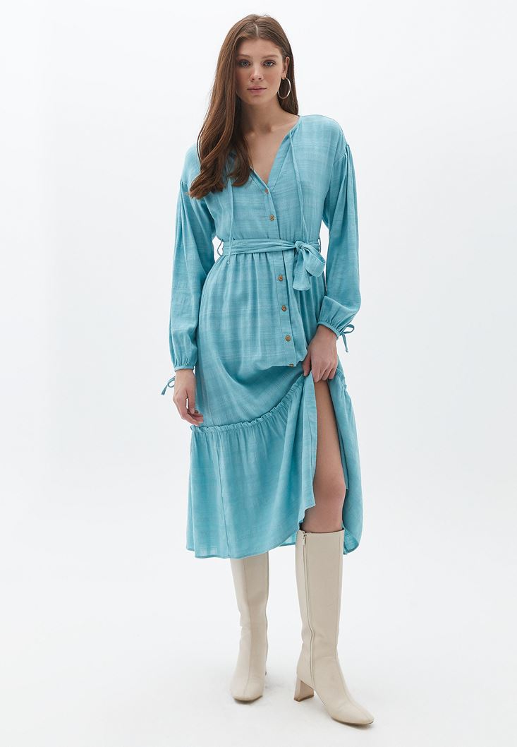 • Bayan Mavi Midi Boy Gömlek Elbise