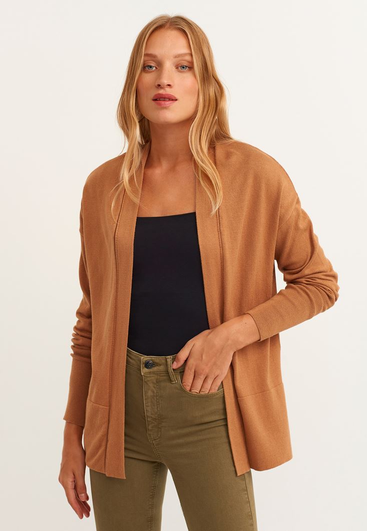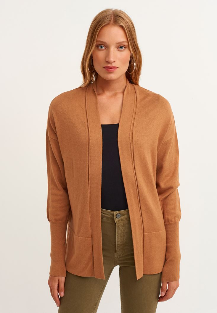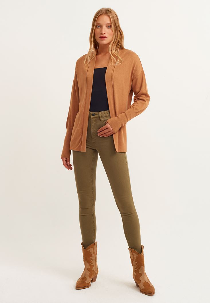 • Bayan Açık Kahverengi Midi Boy Triko Hırka ( MODAL )