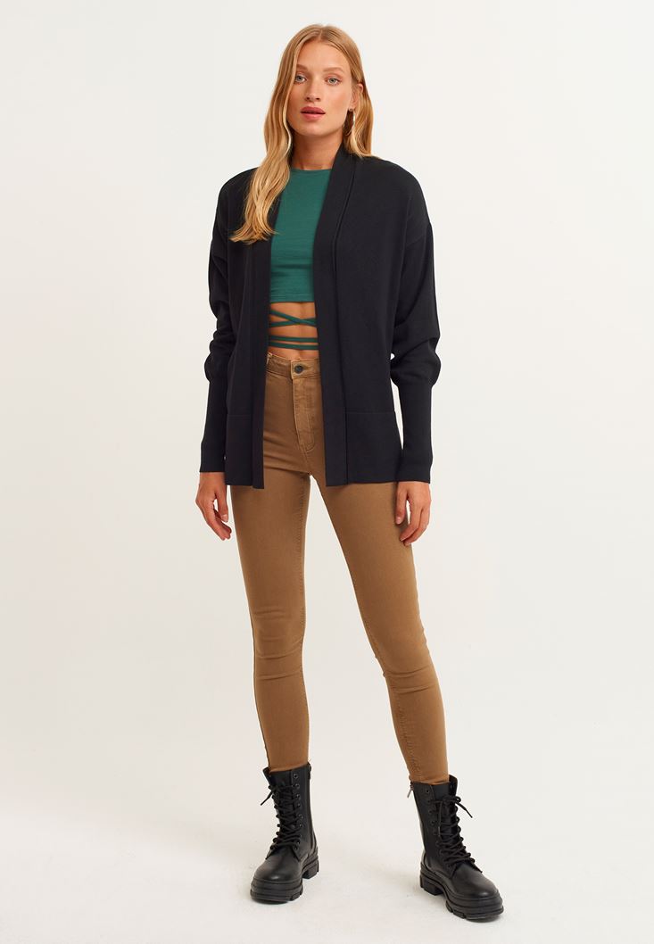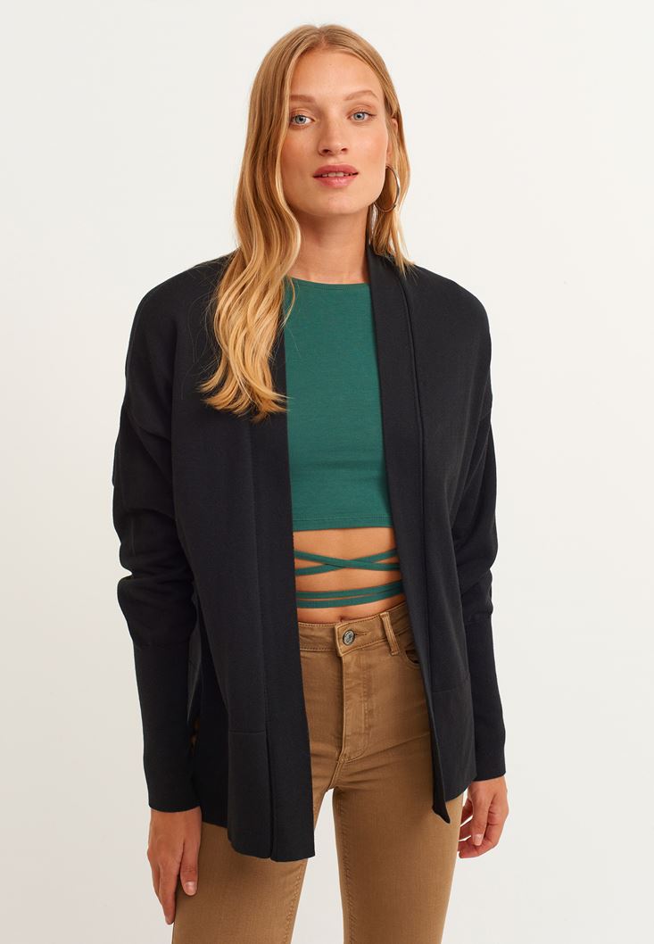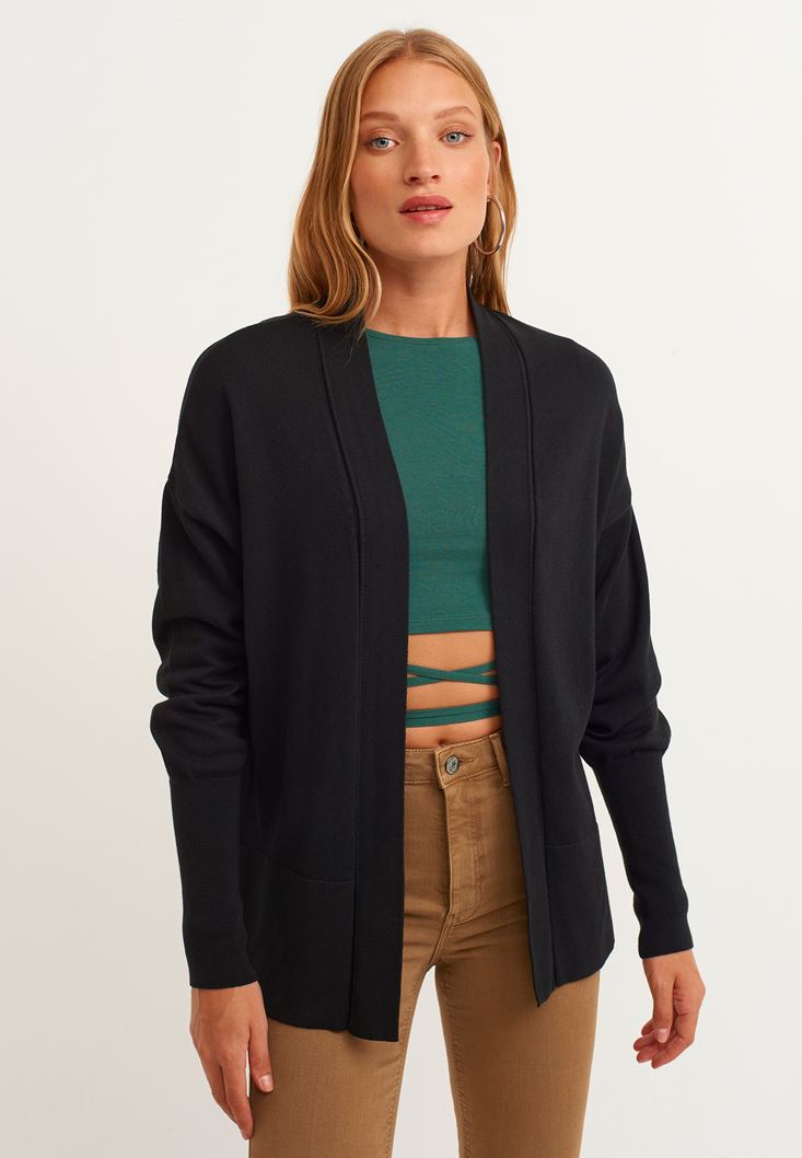 • Bayan Siyah Midi Boy Triko Hırka ( MODAL )