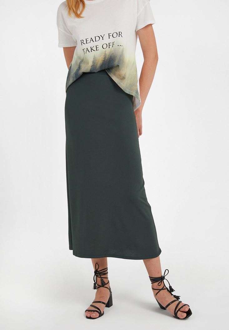 • Bayan Yeşil Midi Boy Volanlı Etek