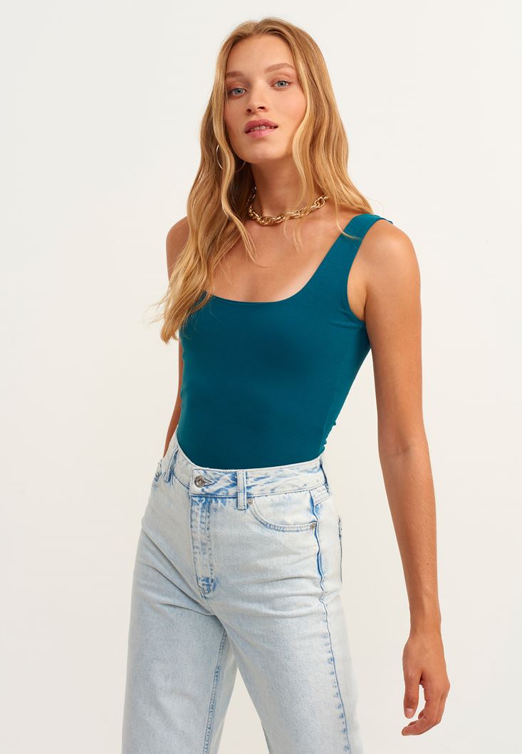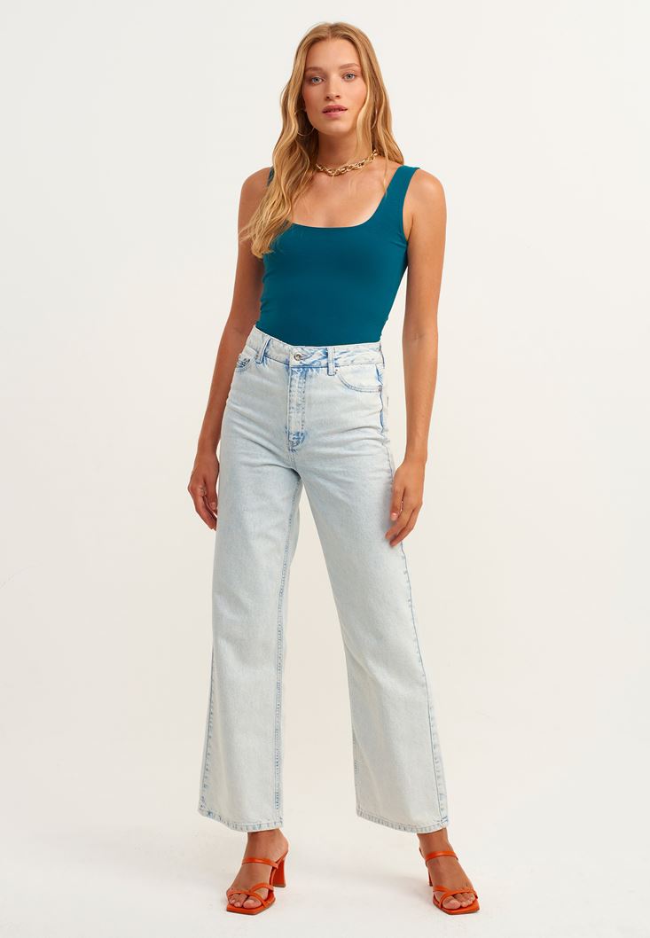 Kare Yaka Atlet ve Straight Pantolon Kombini