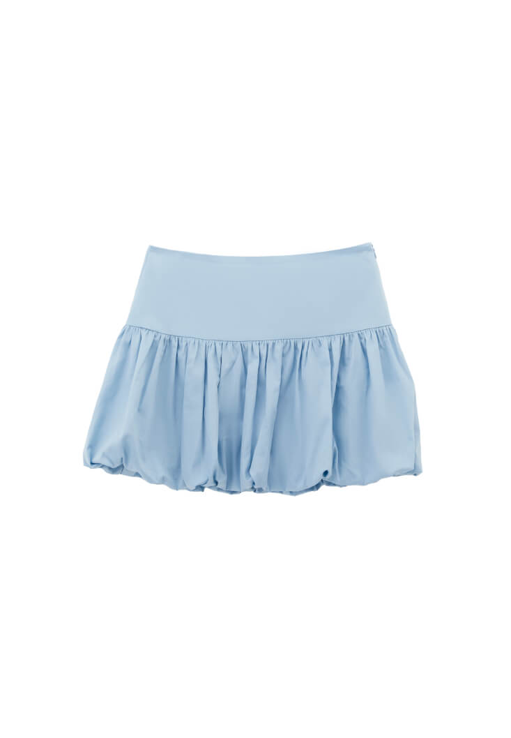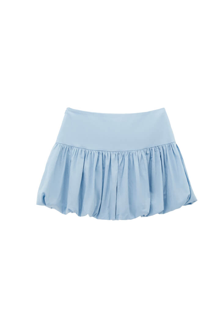 %100 pamuk içerikli doğal doku, yüksek bel, mini boy, belden oturan balon tasarım, yan kısmı fermuar kapamalı.