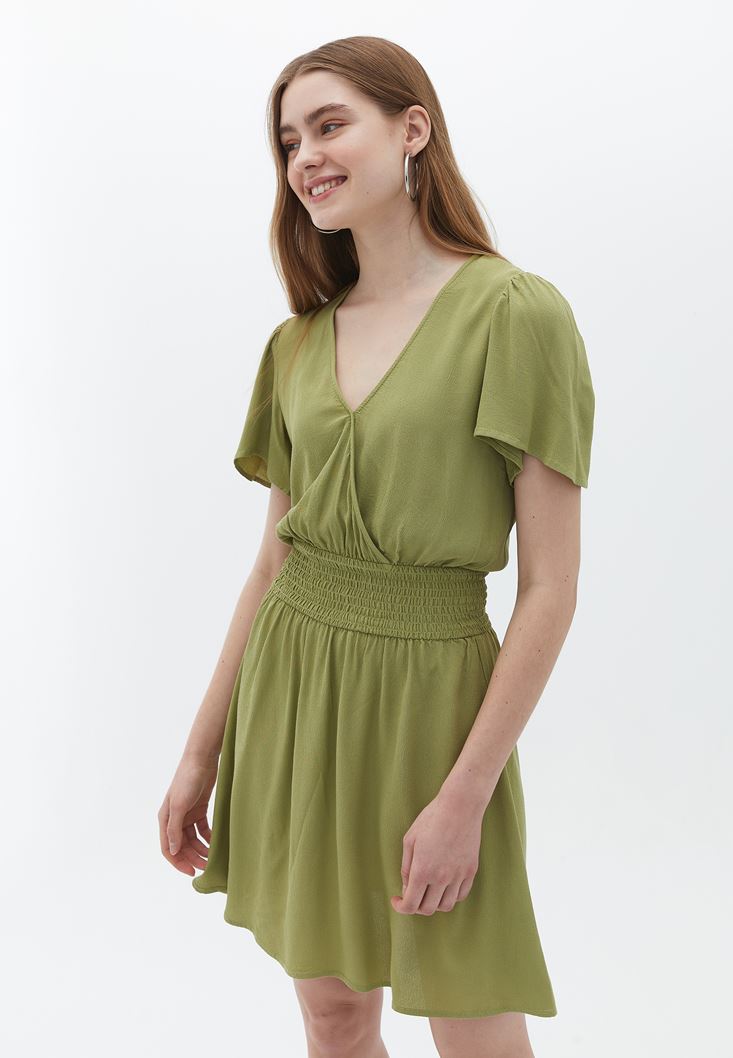 Kruvaze Yaka Mini Elbise