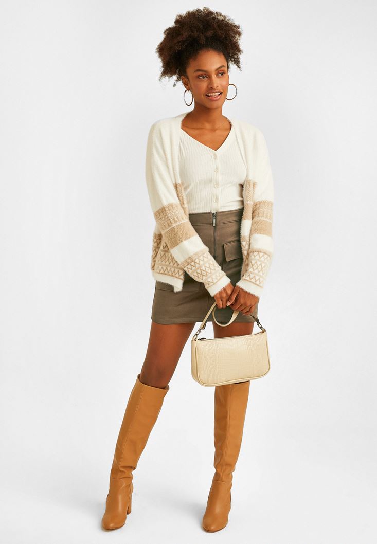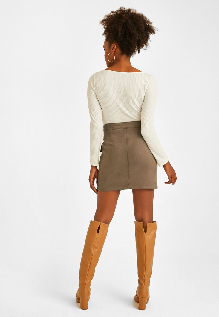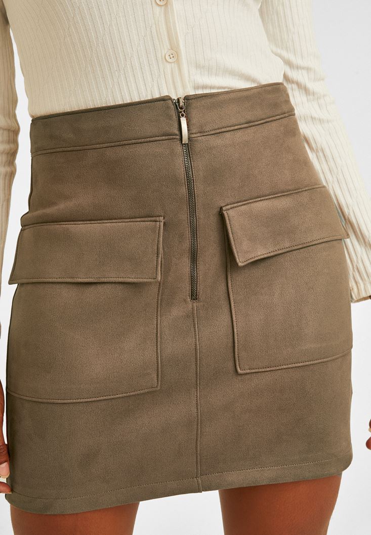 Mini Süet Etek modeli, yumuşacık dokusu ve sıcaklık sunan yapısı ile yeni sezonda karşınıza çıkıyor. Kdın etek modeli, mini formunun çekiciliğiyle ve kapaklı cep ayrıntılarıyla Oxxo'da sizlere sunuluyor. Mini etek modeli, süet dokusunun güçlü görünümüne ek olarak önünde bulunan fermuar detayıyla farklılığı sizlerle buluşturuyor. kadın süet etek modeli, bulunacağınız her ortama uygun olabilecek kombinlerde sizlere eşlik etmek için hazır görünüyor. Mini etek modeli ile V yakalı bluzlar ve süet ceketler tercih ederek hoş bütünlükler yaratabilirsiniz. Kadın mini etek modeline yer vereceğiniz kombinlerde süet dokulu çizmeler veya botlar kullanabilirsiniz. Oxxo'nun bakıldığı ilk anda hayranlık uyandıran kadın etek modelleri ile stilinize ayrıcalık katabilirsiniz.
