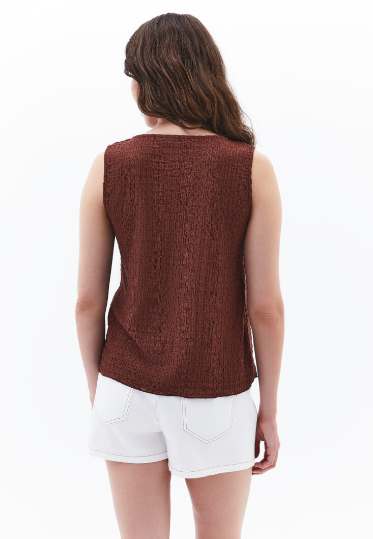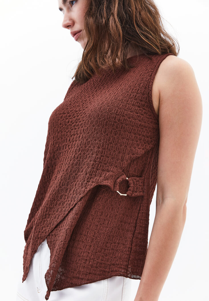 Kahverengi Modal Aksesuar Detaylı Bluz