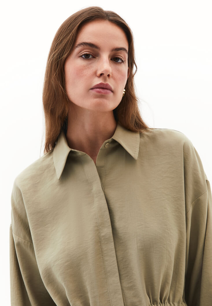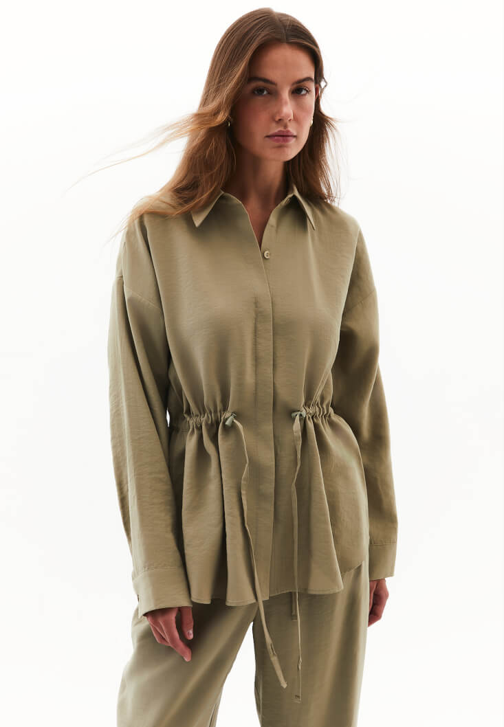 Yeşil Modal Bağcıklı Oversize Gömlek