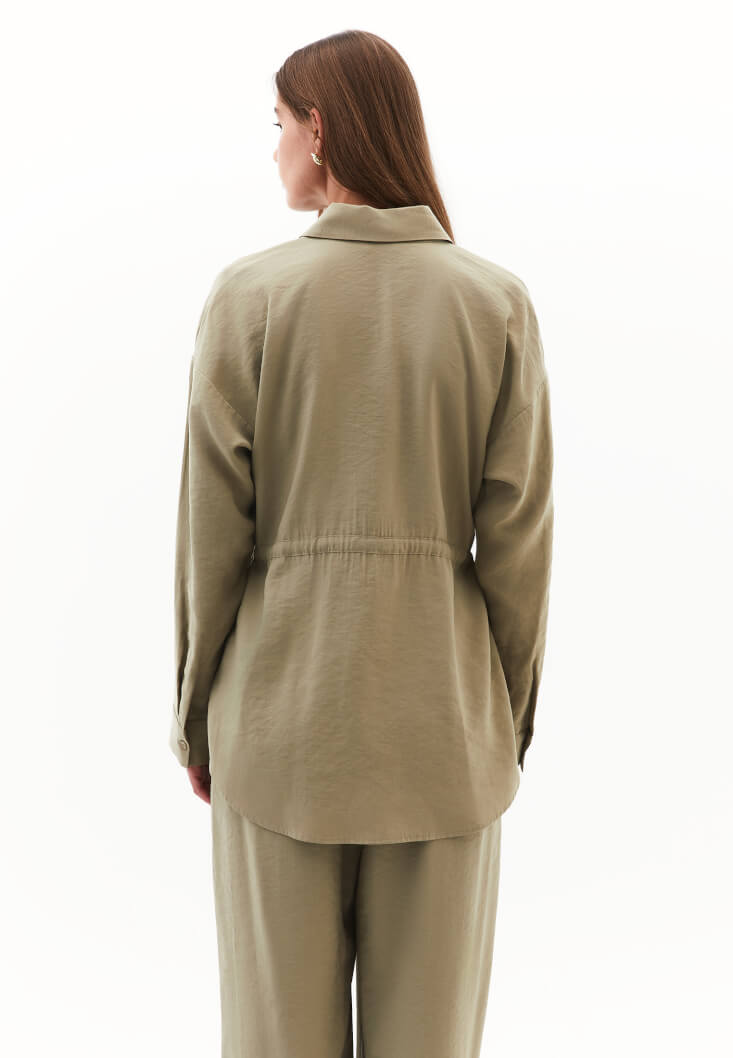 • Bayan Yeşil Modal Bağcıklı Oversize Gömlek