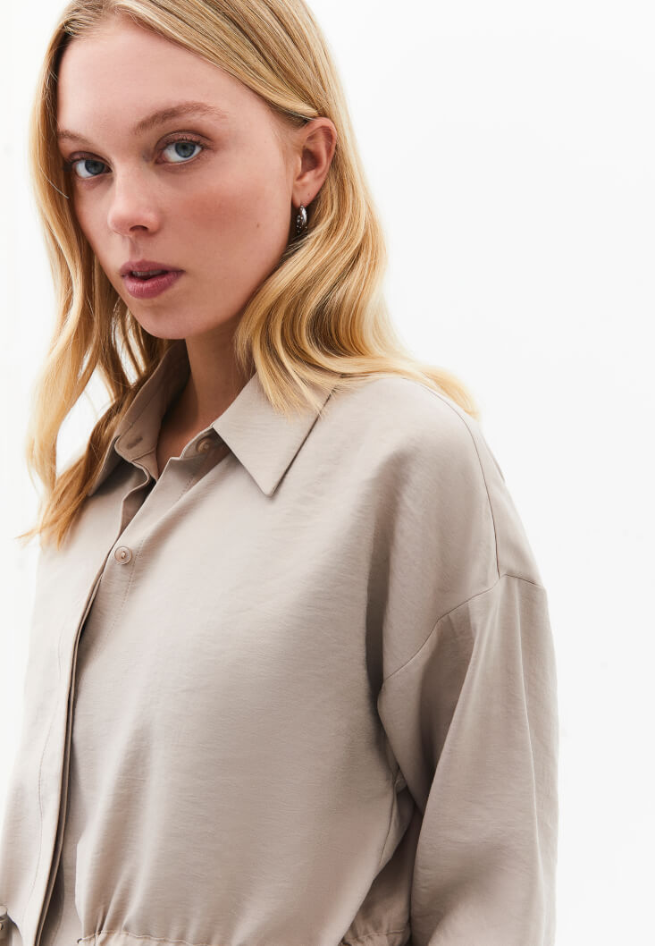 • Bayan Bej Modal Bağcıklı Oversize Gömlek