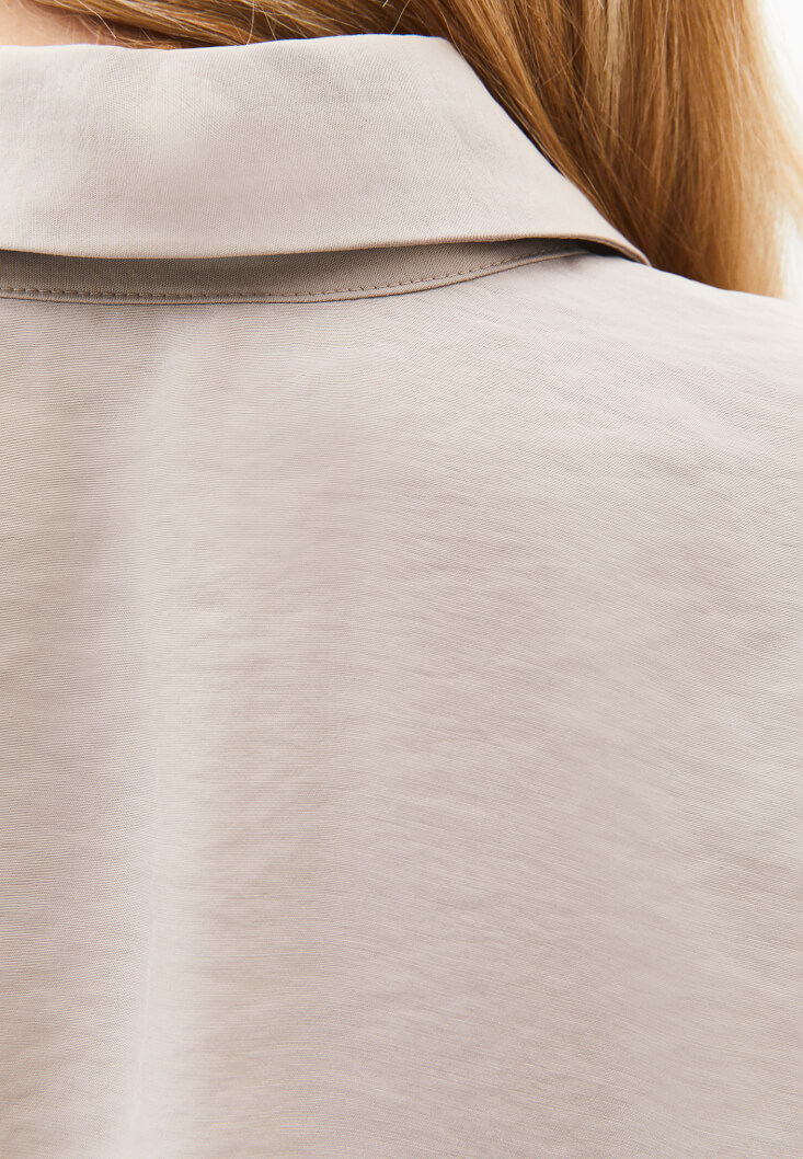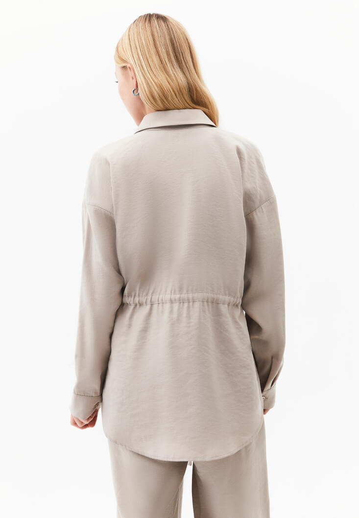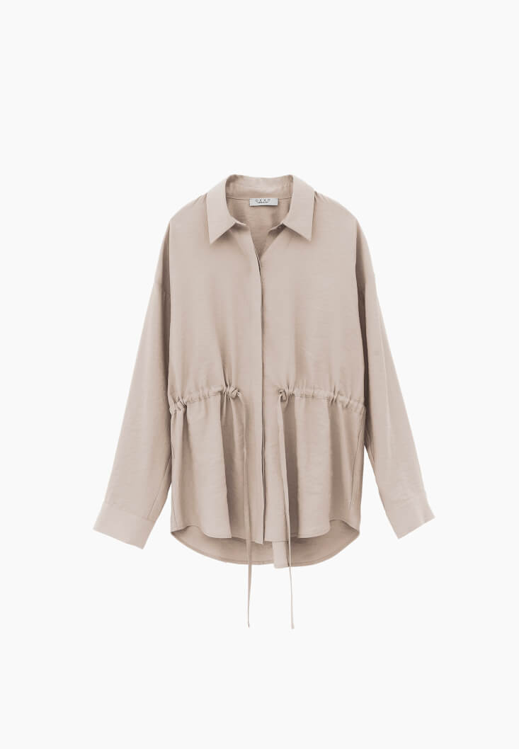 Bej Modal Bağcıklı Oversize Gömlek