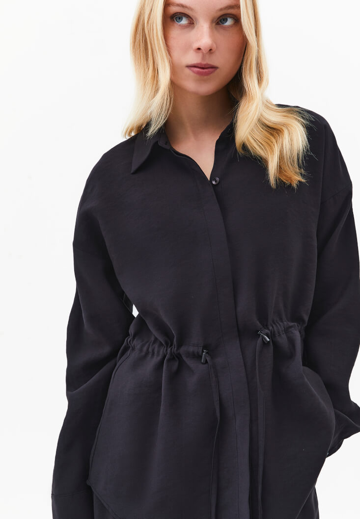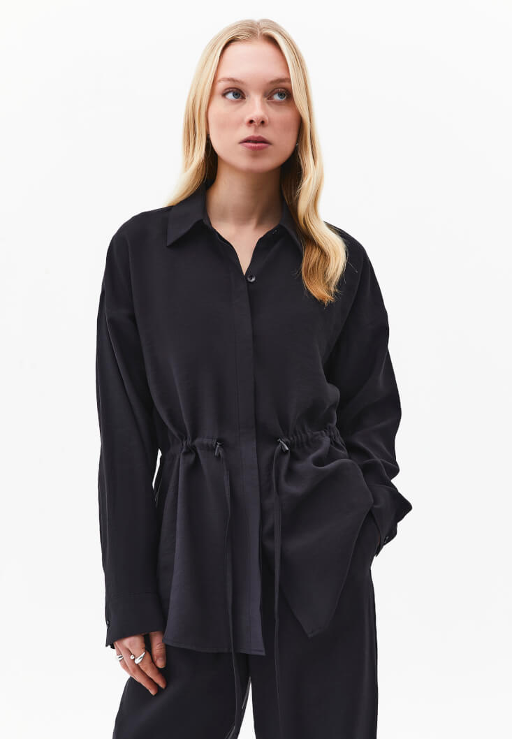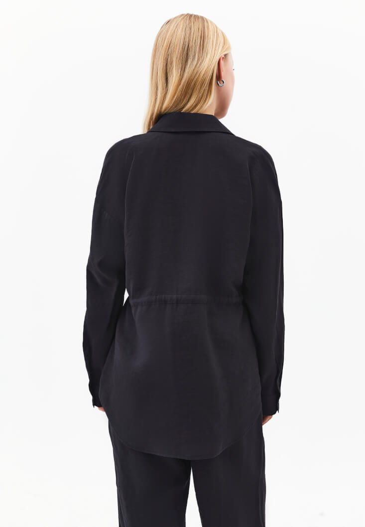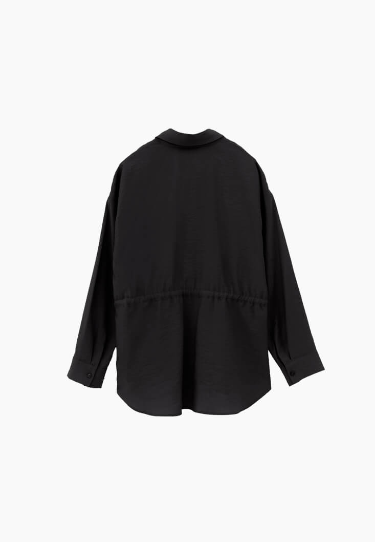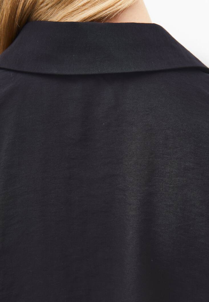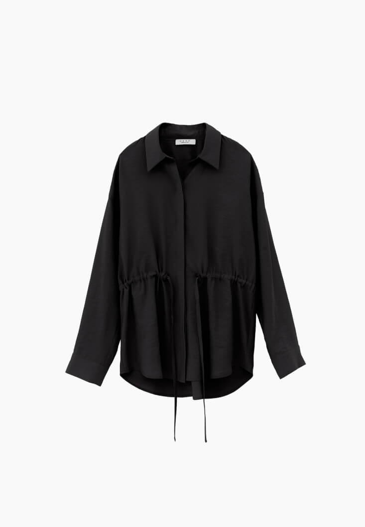 Siyah Modal Bağcıklı Oversize Gömlek