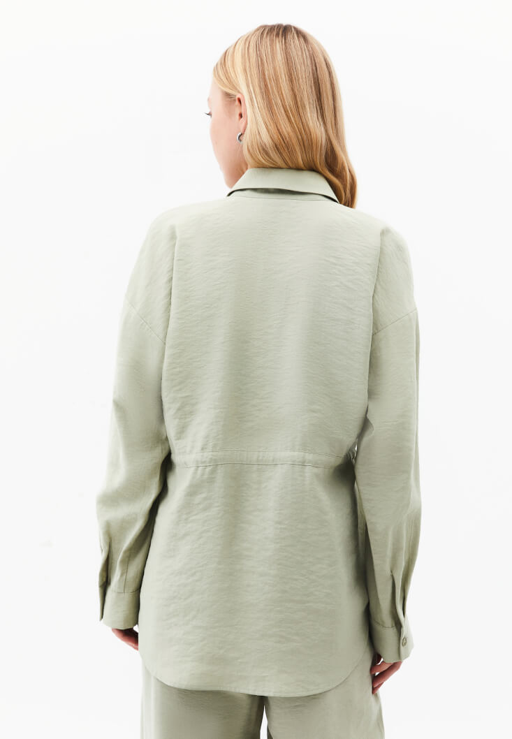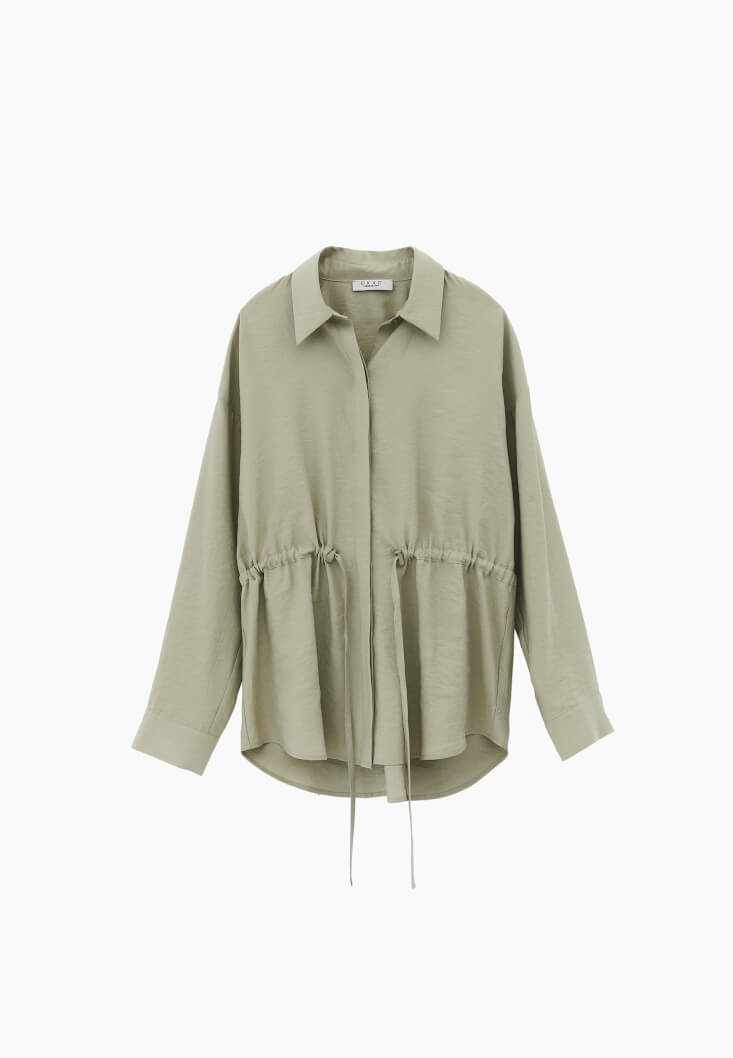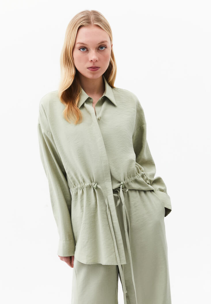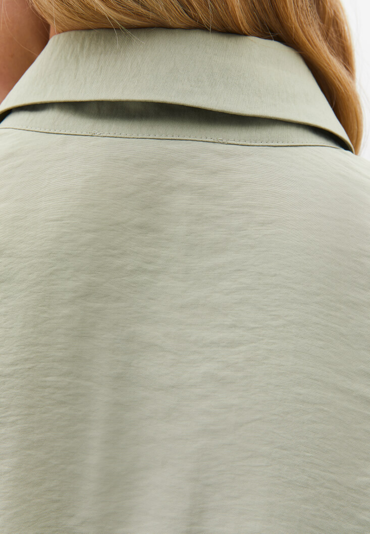 Yeşil Modal Bağcıklı Oversize Gömlek