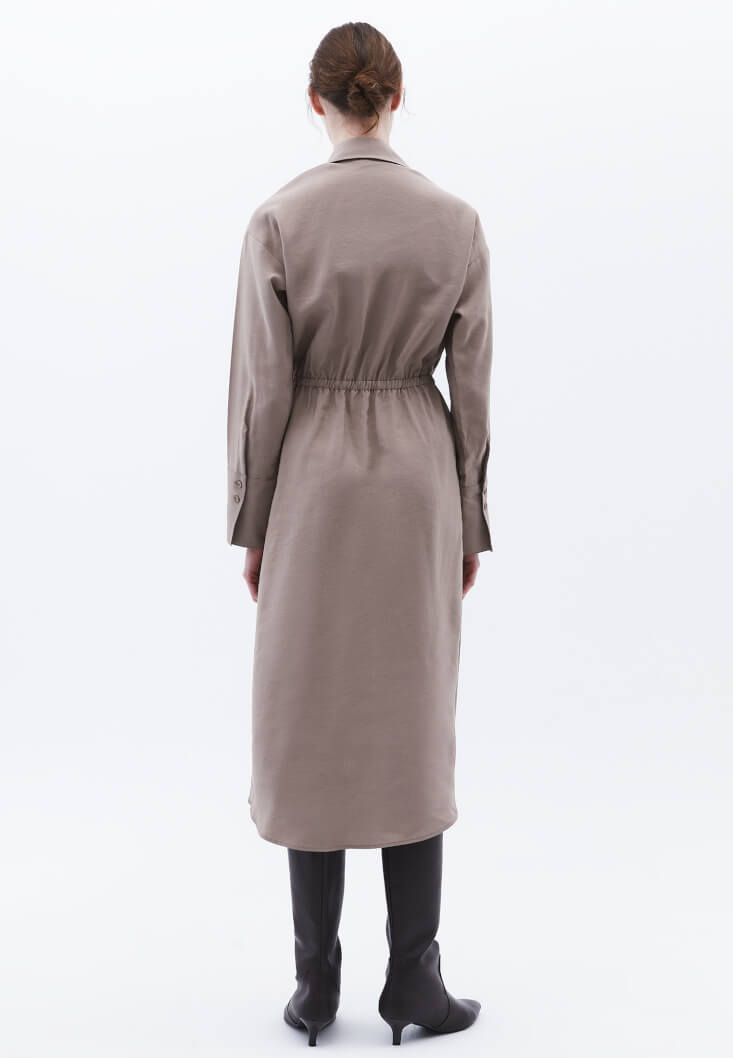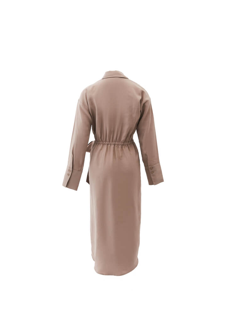 Kahverengi Modal Bağlama Detaylı Midi Elbise