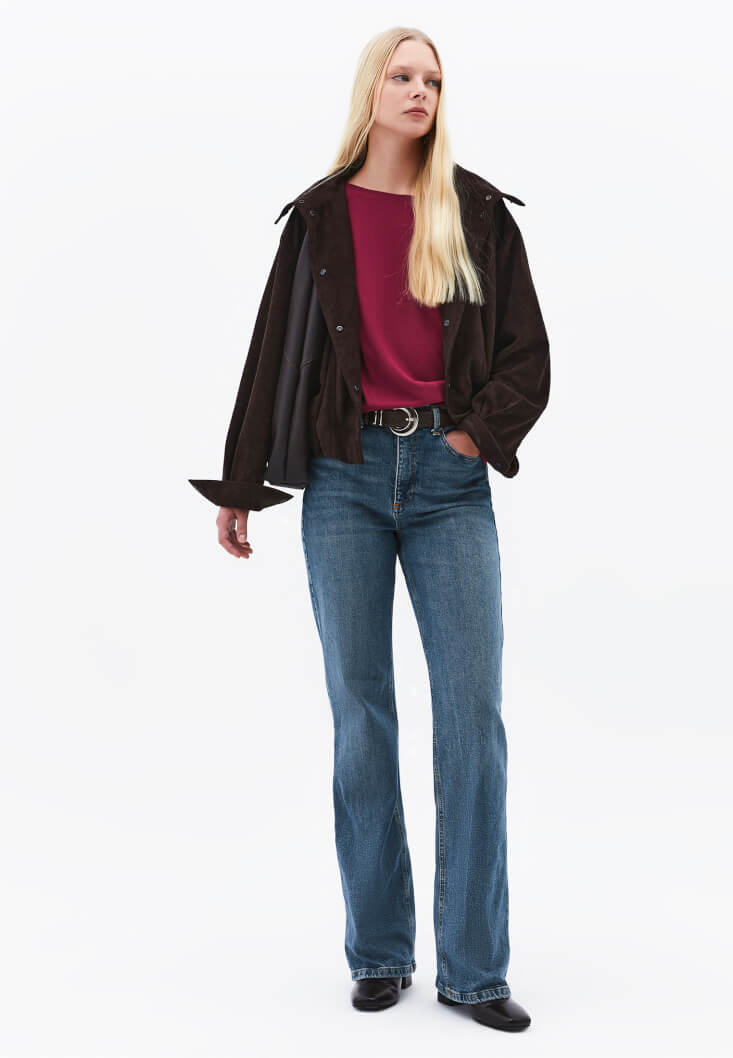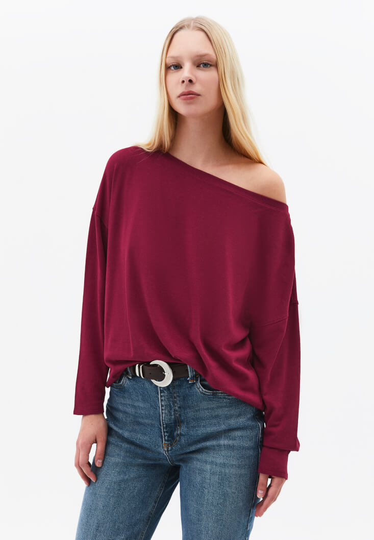 • Bayan Kırmızı Modal Bot Yaka Kazak