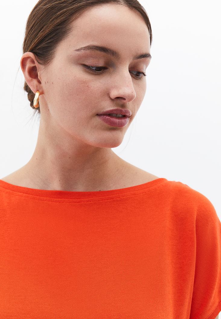 Modal Bot Yaka Tişört ve Wide-Leg Denim Pantolon Kombini