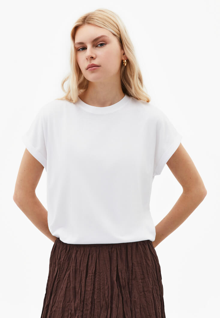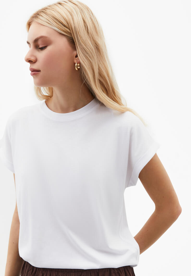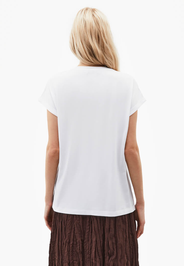 • Bayan Beyaz Modal Bot Yaka Tişört