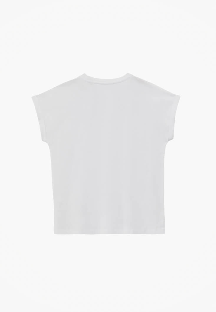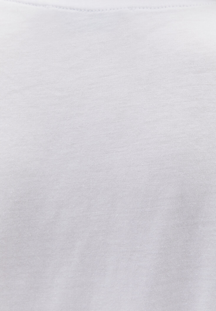 Beyaz Modal Bot Yaka Tişört