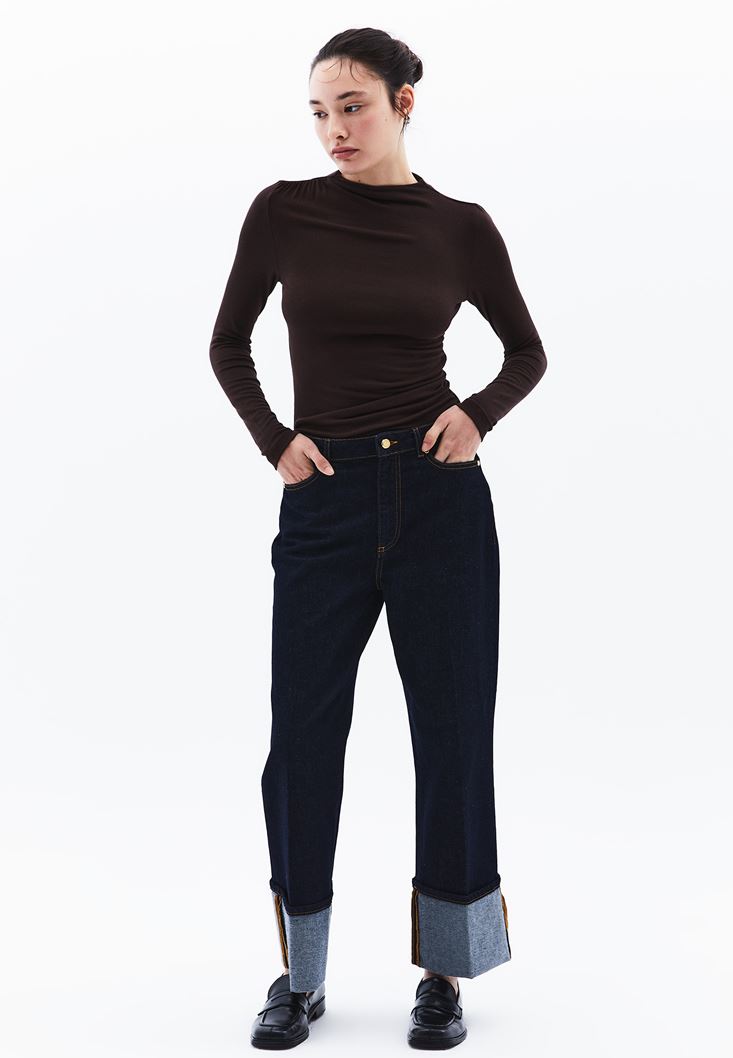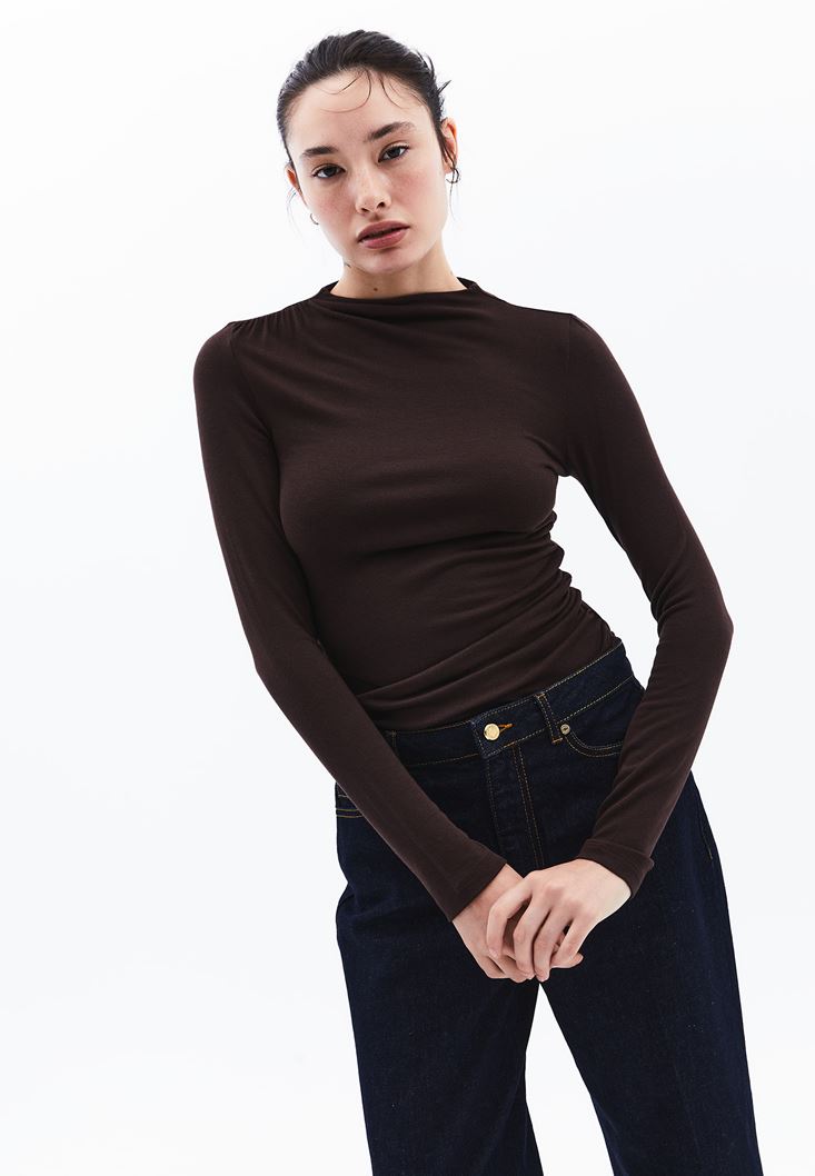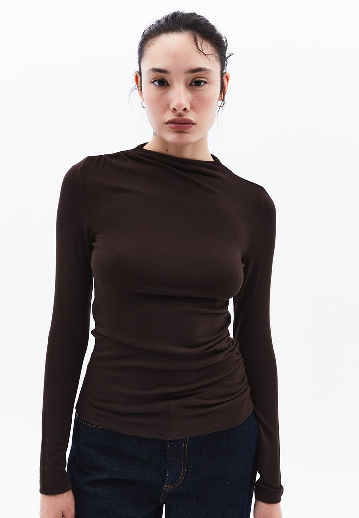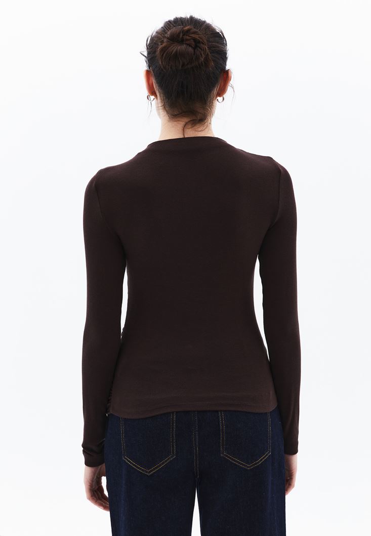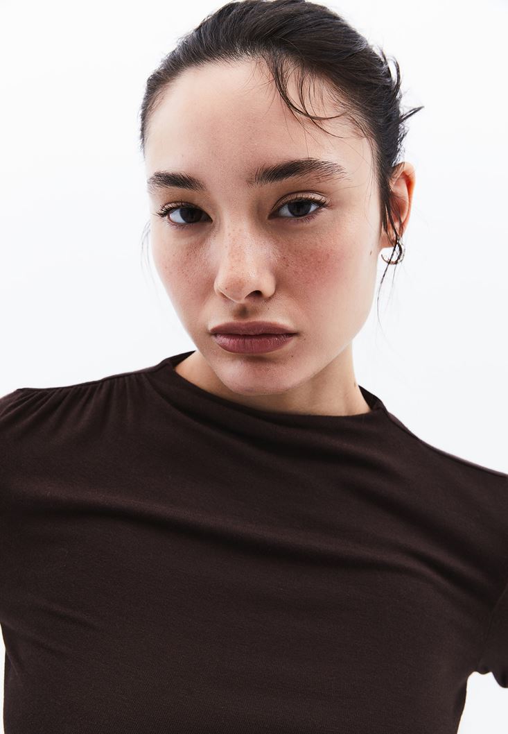 Kahverengi Modal Büzgü Detaylı Tişört