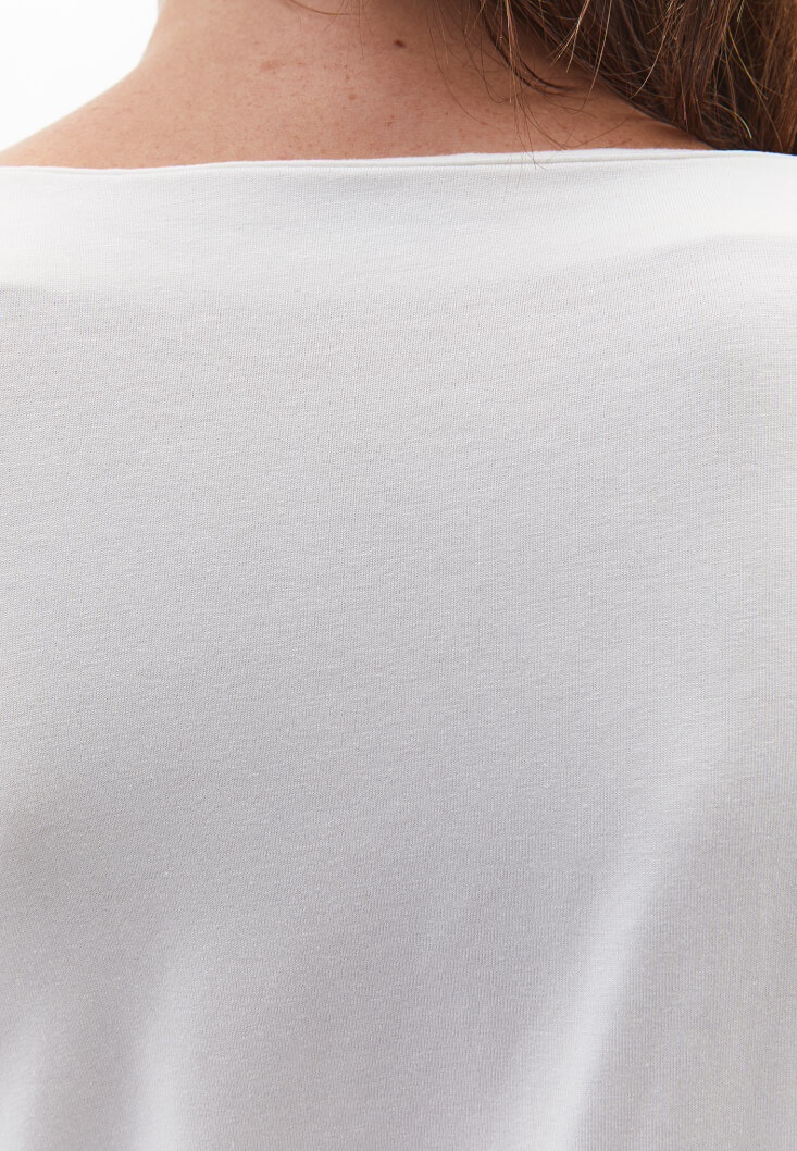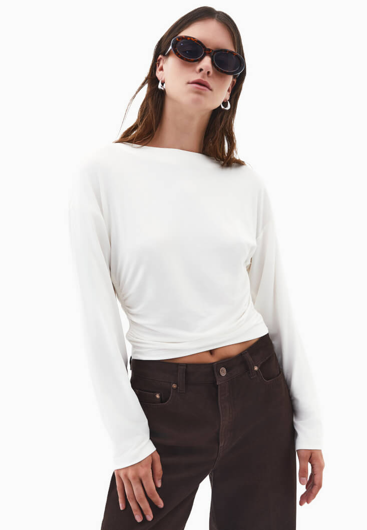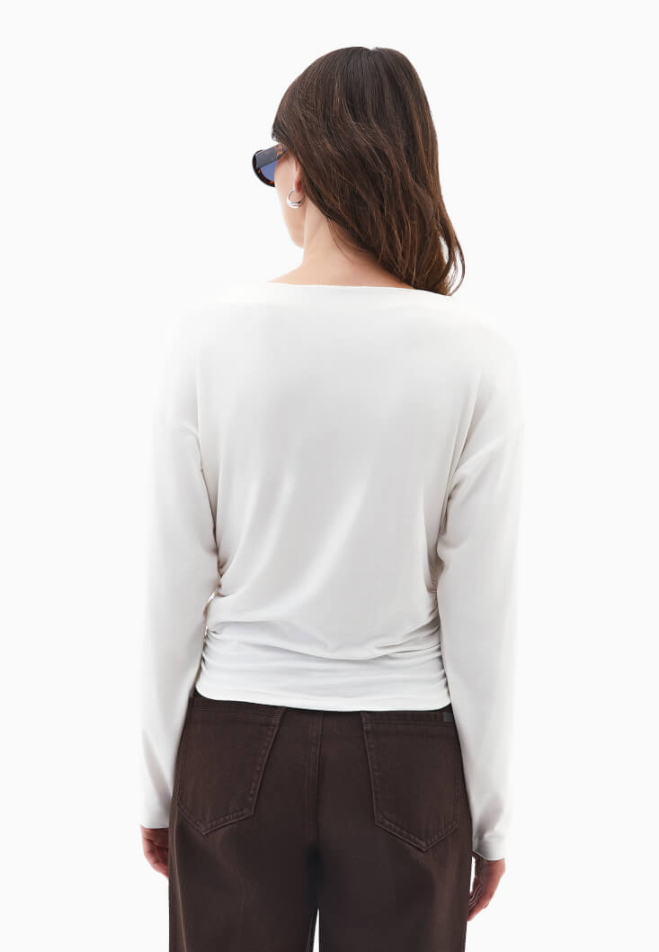 • Bayan Krem Modal Büzgü Detaylı Tişört