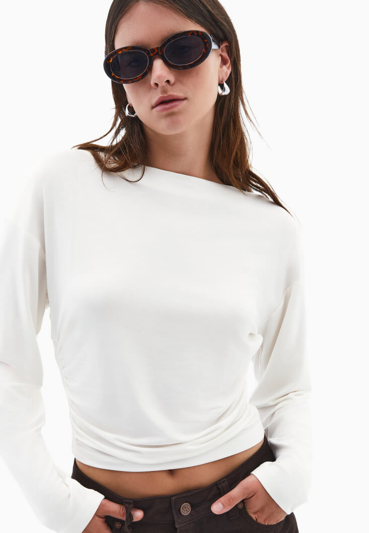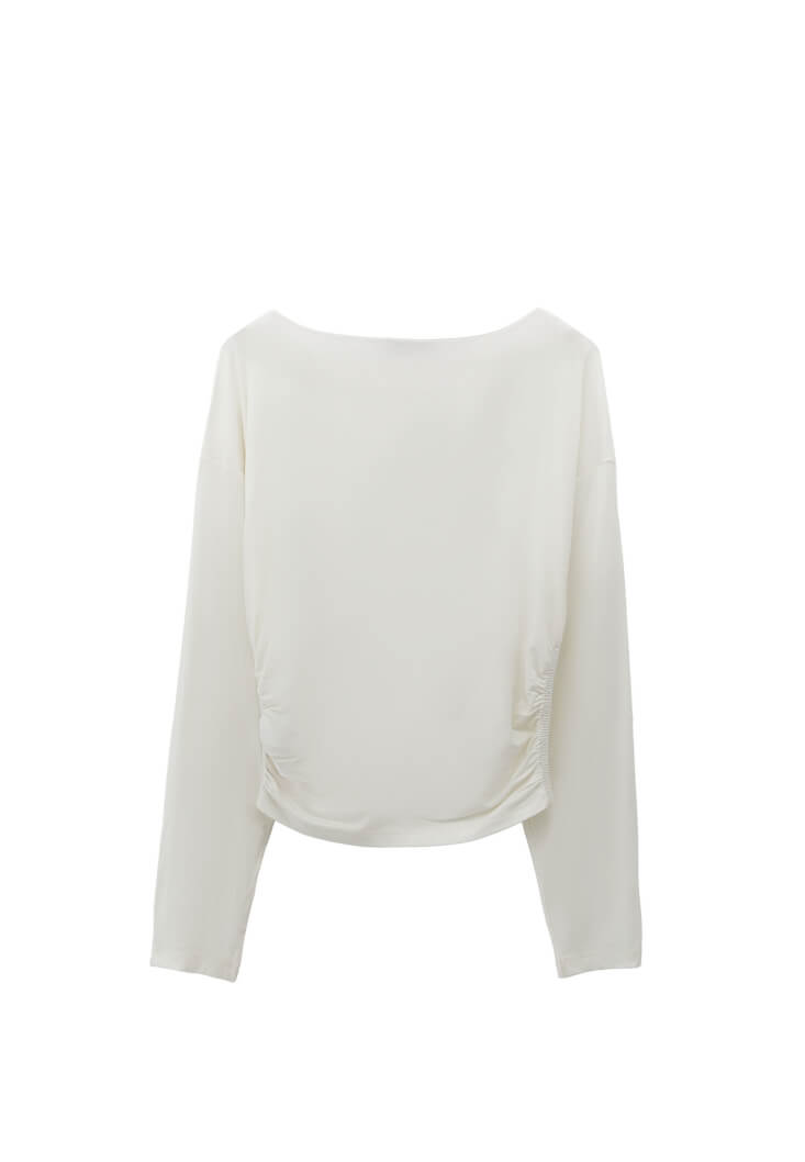 Krem Modal Büzgü Detaylı Tişört