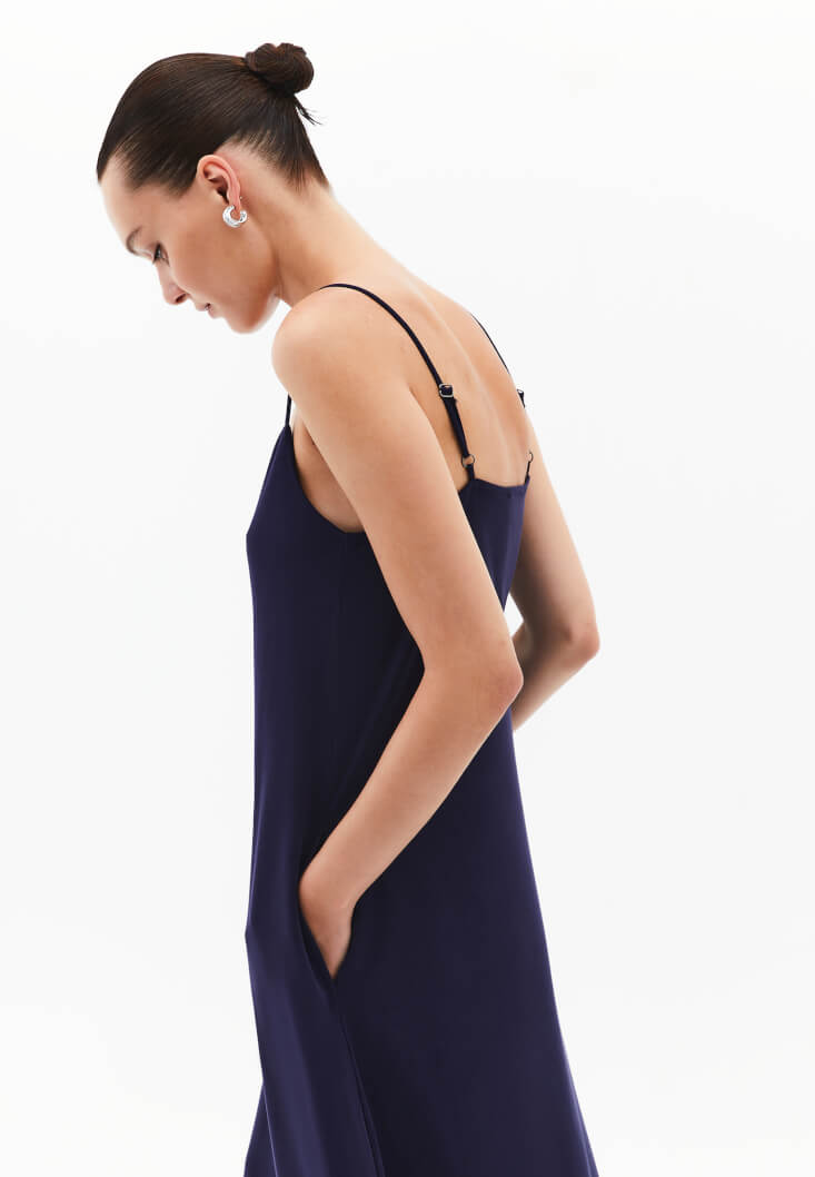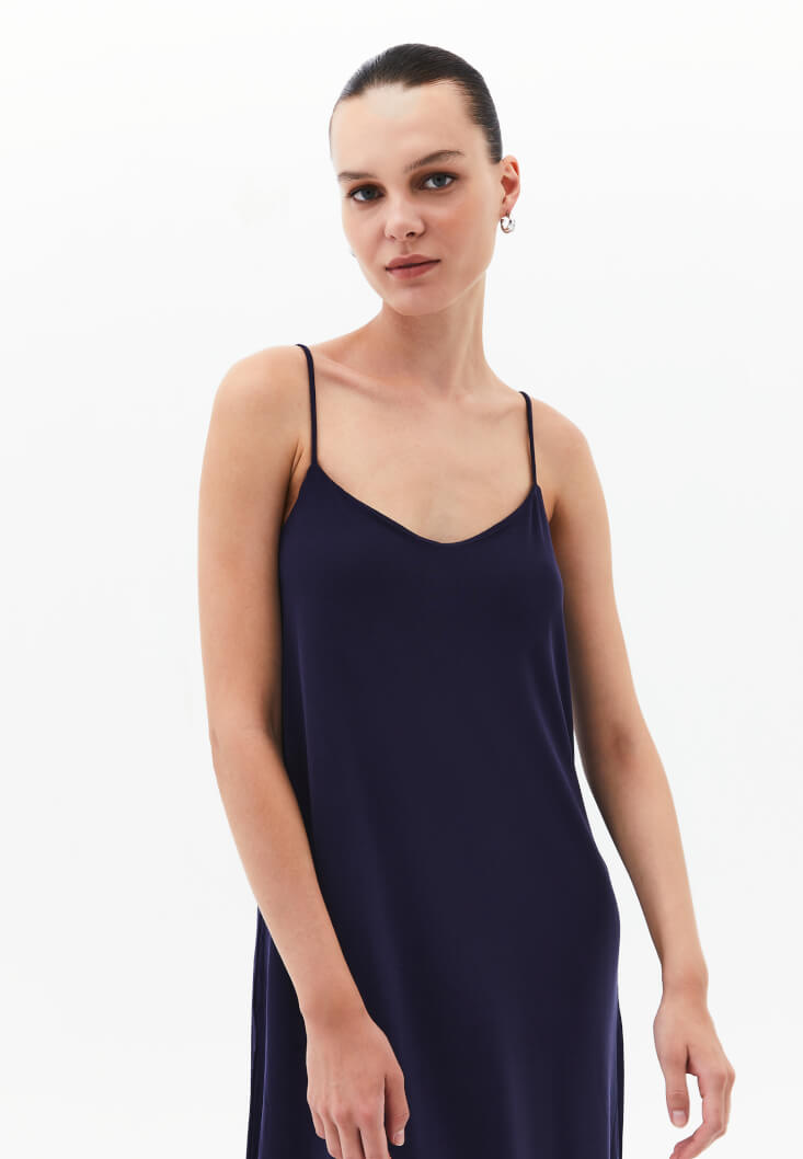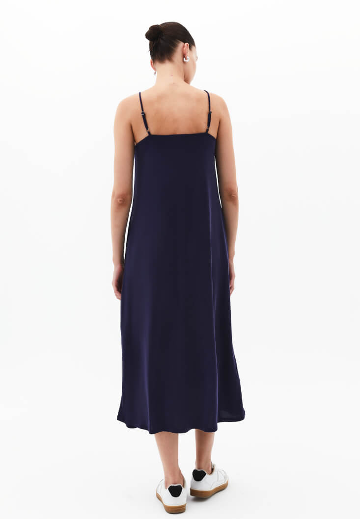 • Bayan Lacivert Modal Cepli Midi Elbise