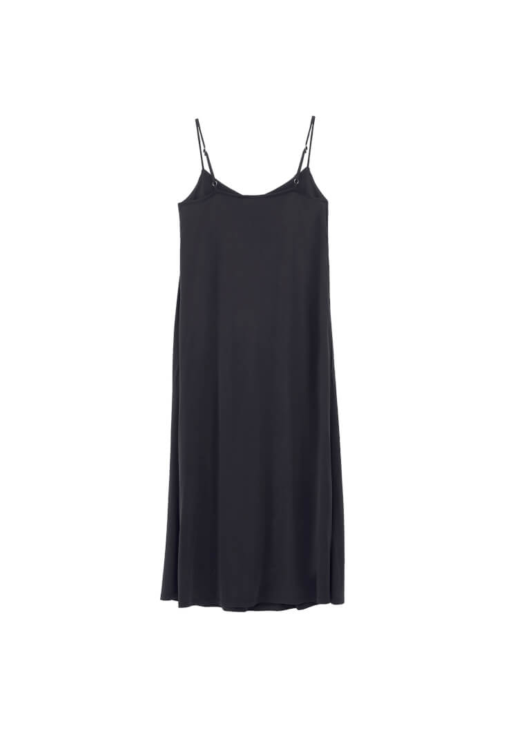 Modal karışımlı ekstra yumuşak doku, A kesim, V yaka, ayarlanabilir ince askılı, iki cepli, bedenden uzak rahat fit, midi boy.
