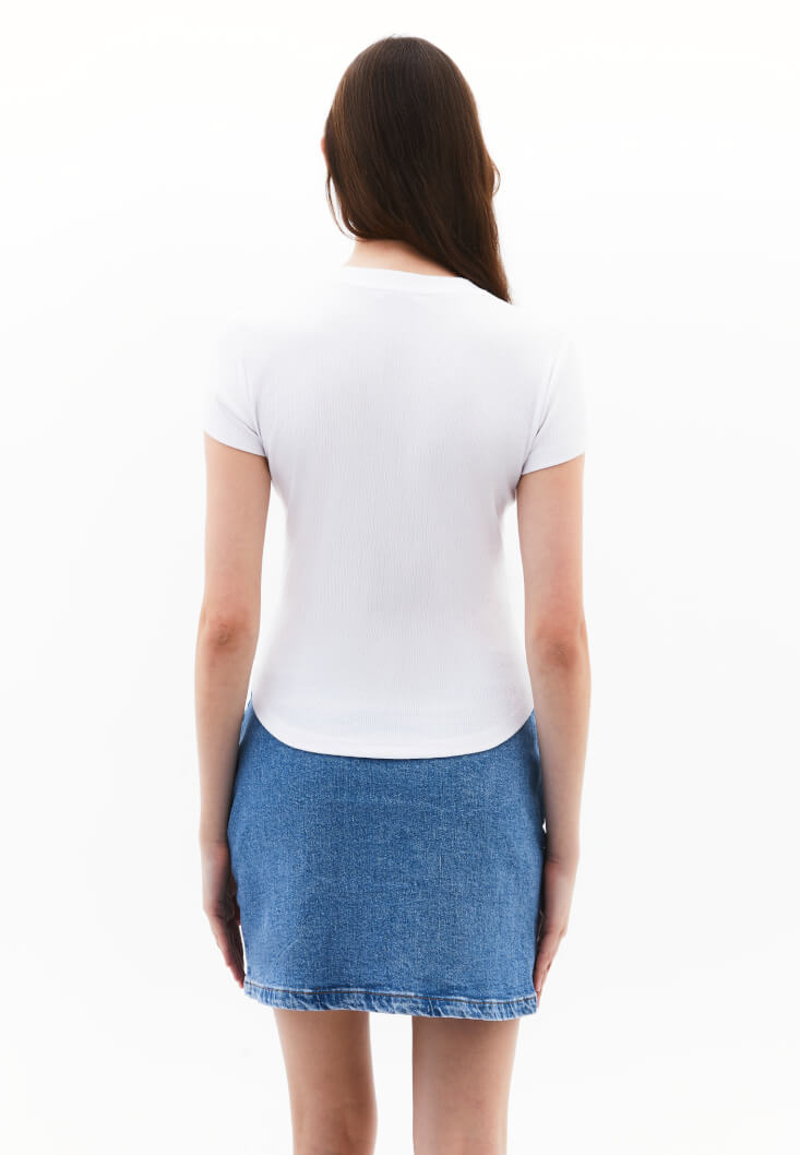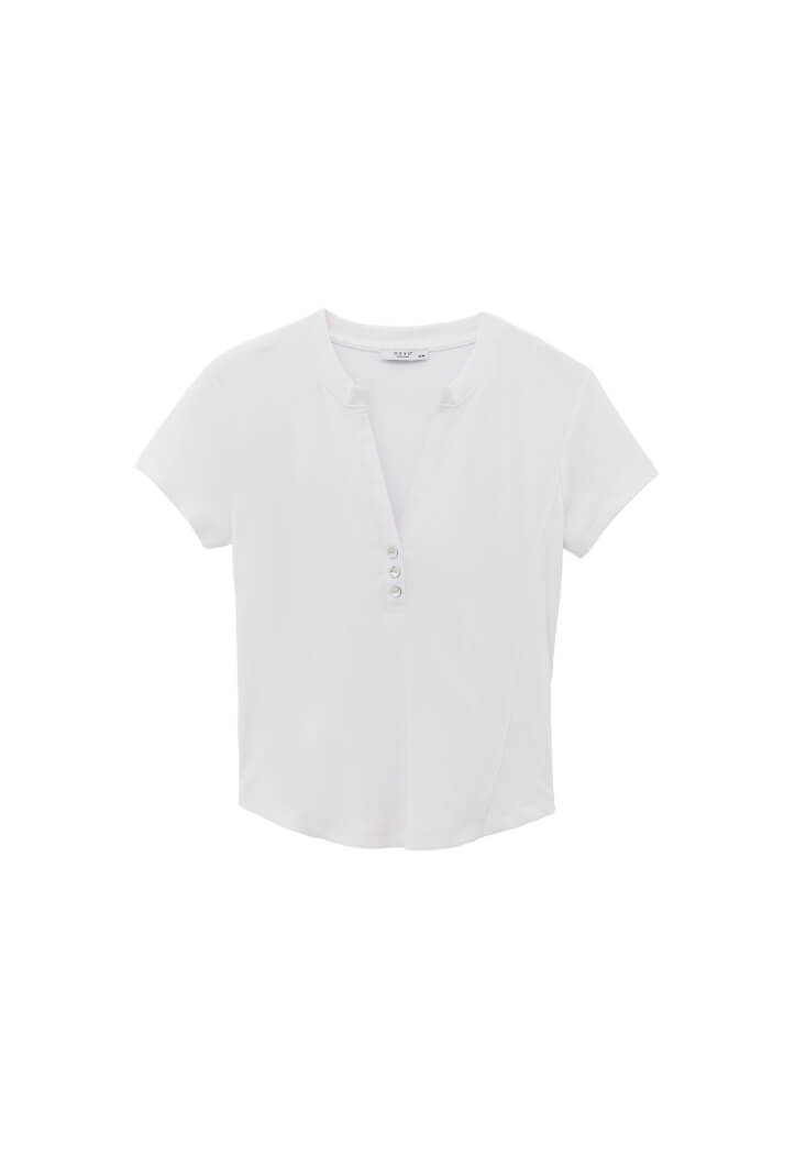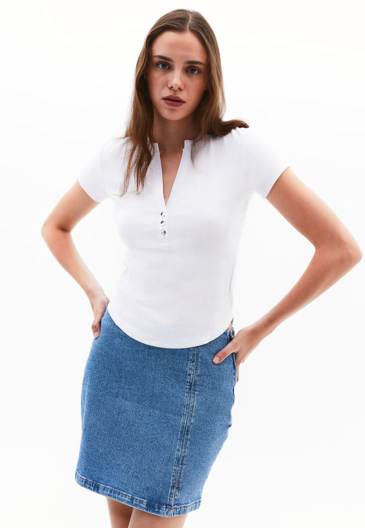 • Bayan Beyaz Modal Düğme Detaylı Tişört