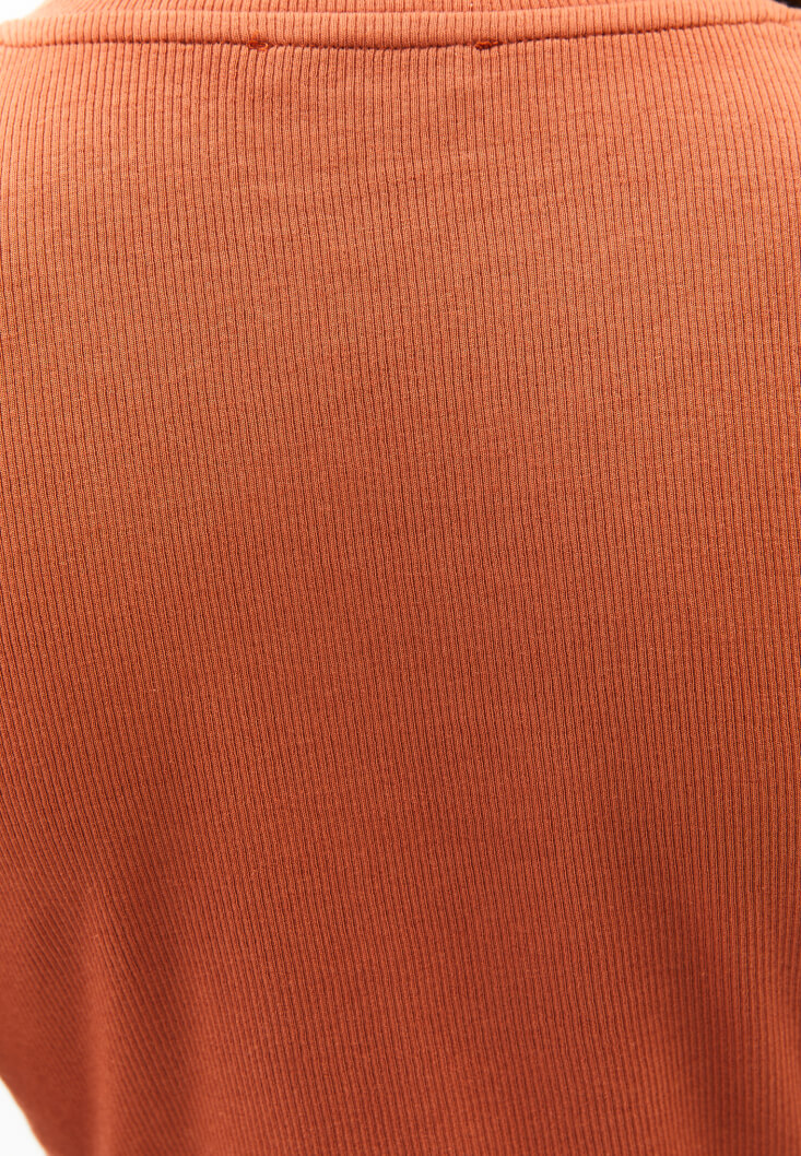 • Bayan Turuncu Modal Düğme Detaylı Tişört
