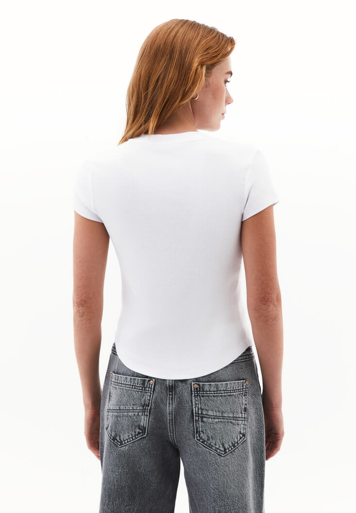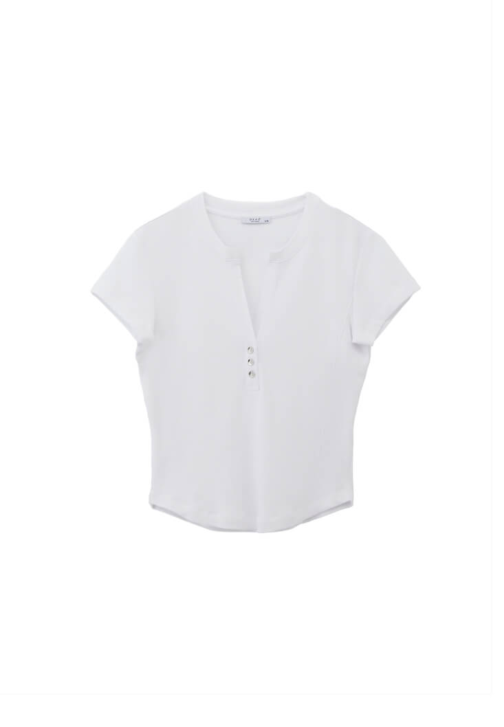 • Bayan Beyaz Modal Düğme Detaylı Tişört