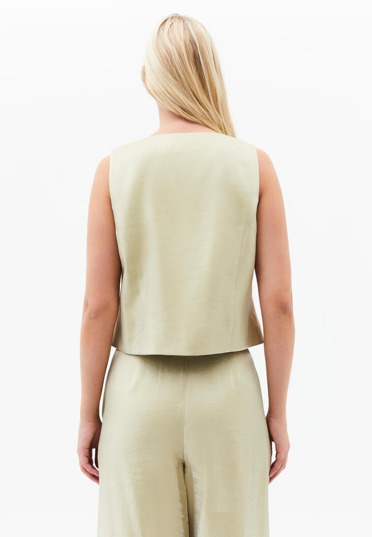 • Bayan Yeşil Modal Düğme Detaylı Yelek