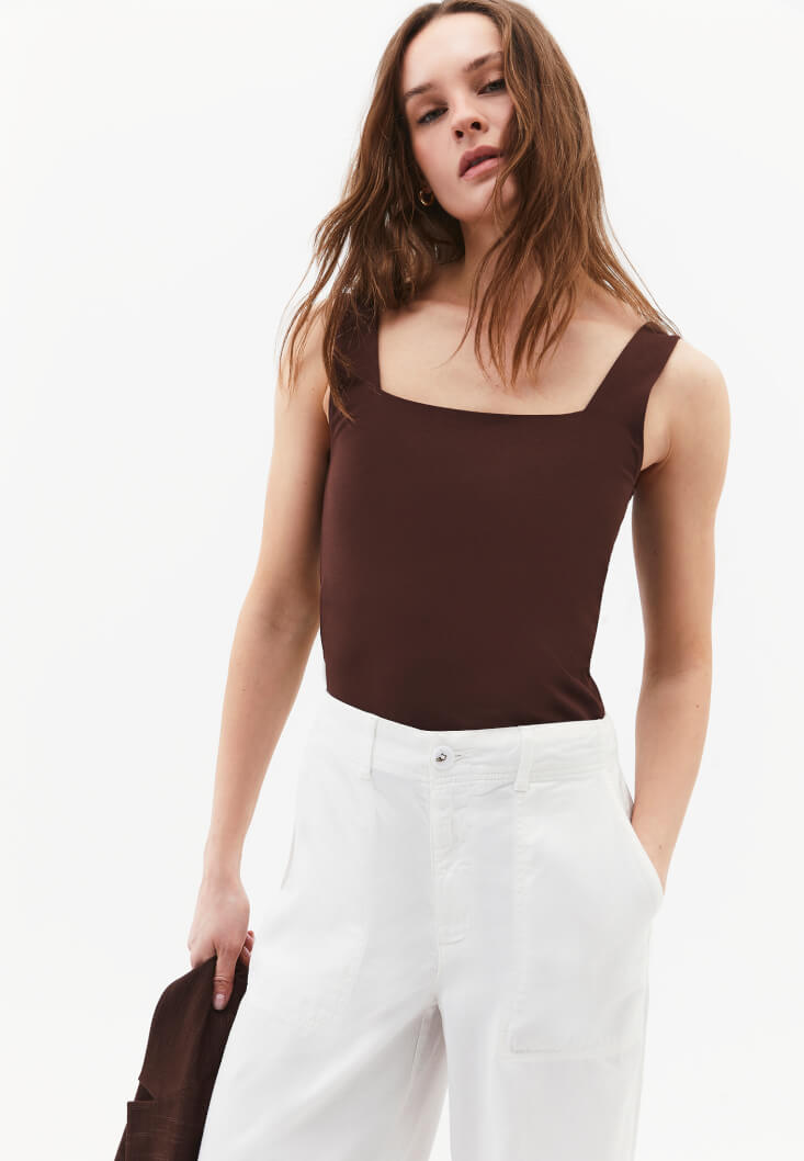 • Bayan Kahverengi Modal Kare Yaka Atlet