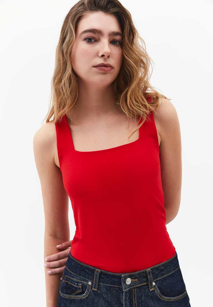 • Bayan Kırmızı Modal Kare Yaka Atlet