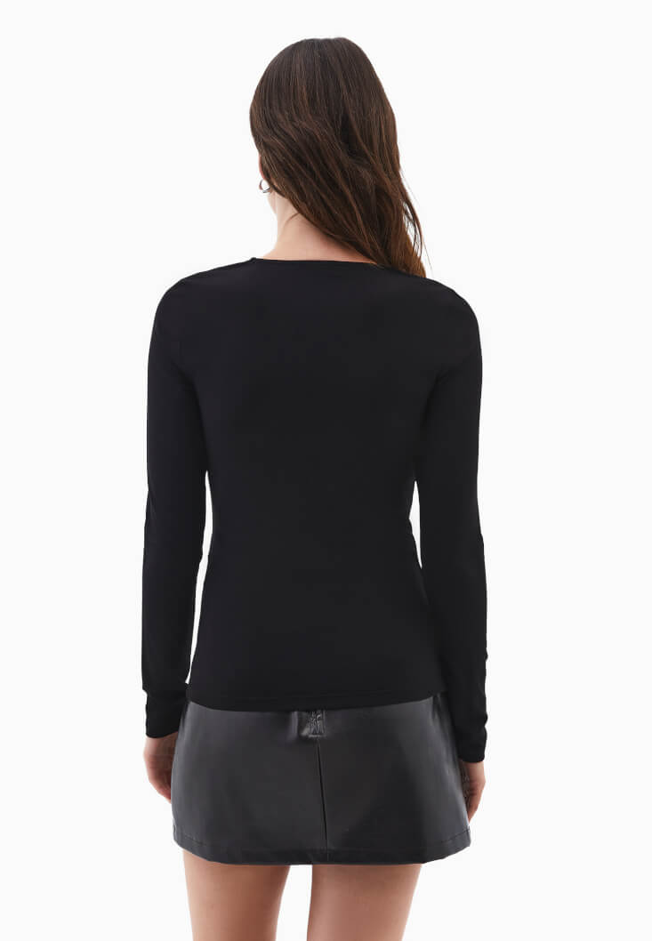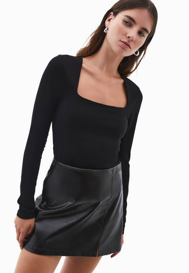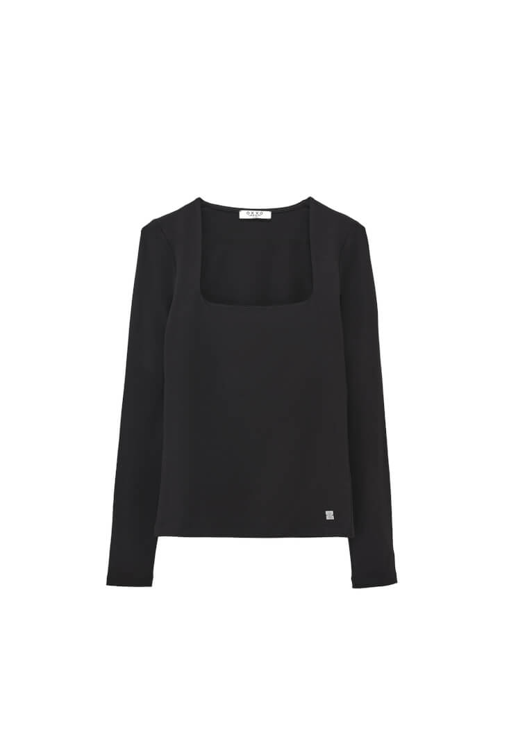 • Bayan Siyah Modal Kare Yaka Tişört