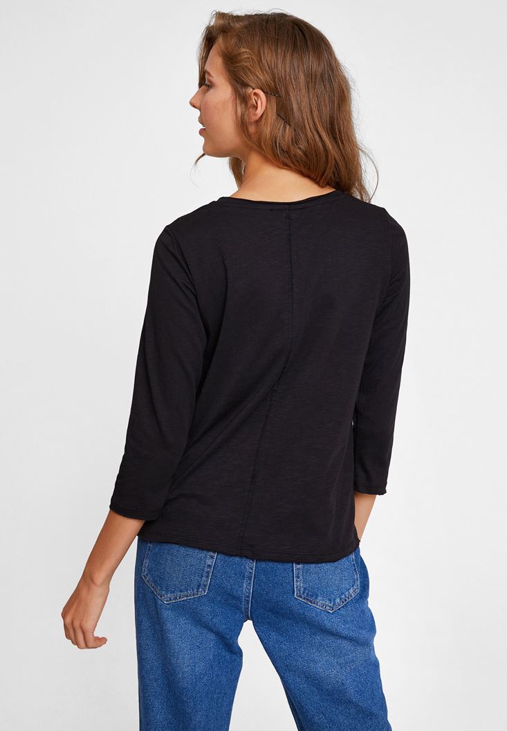 • Bayan Siyah Modal Karışımlı Uzun Kollu Tişört