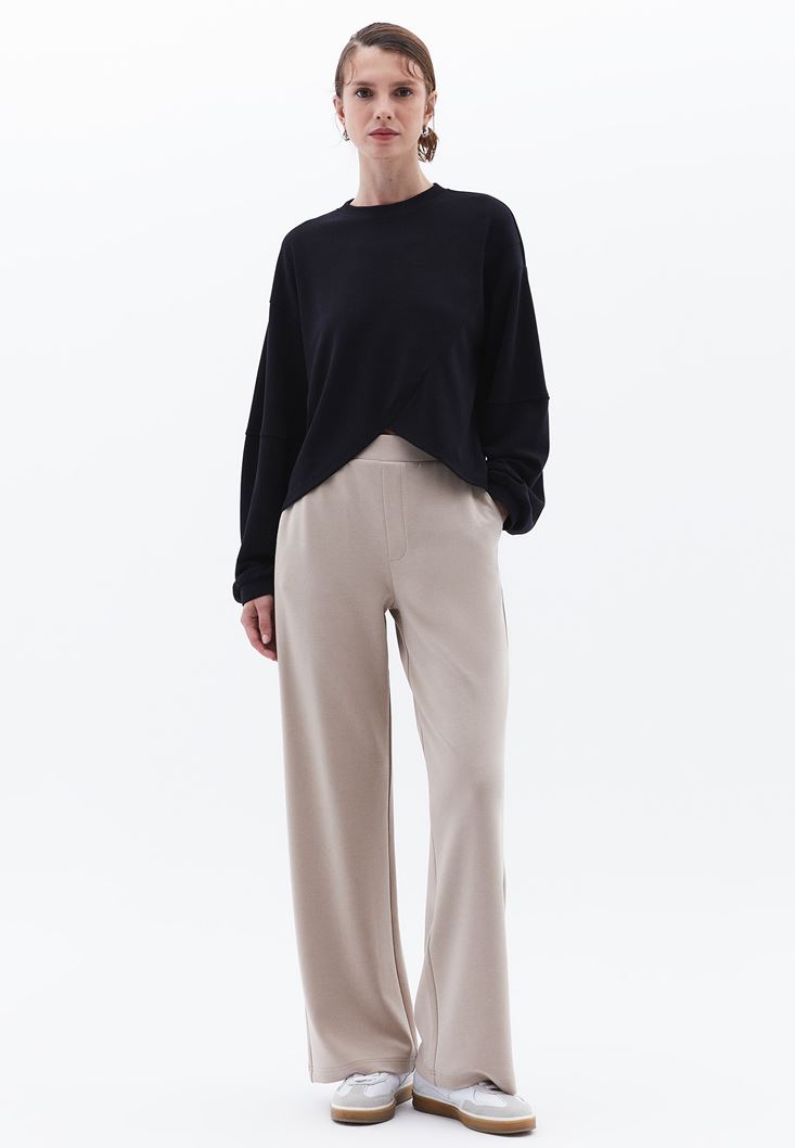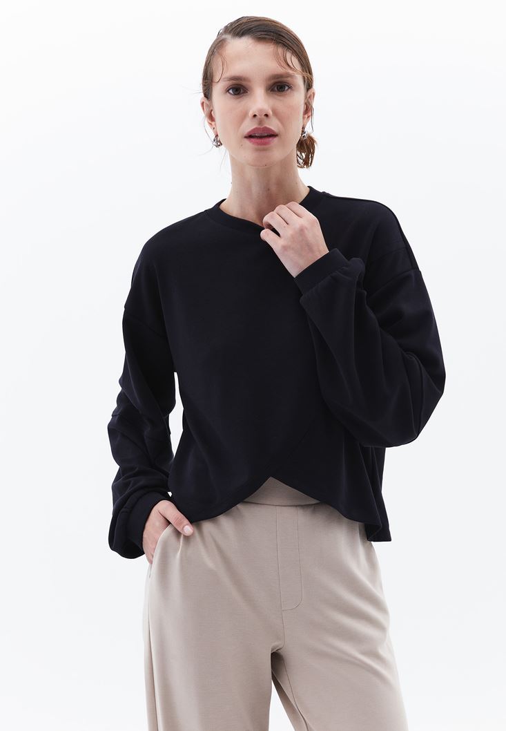 • Bayan Siyah Modal Kruvaze Detaylı Sweatshirt