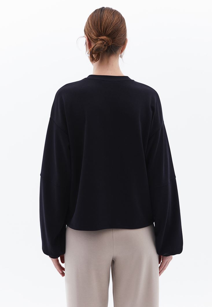 Siyah Modal Kruvaze Detaylı Sweatshirt