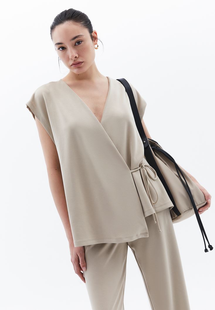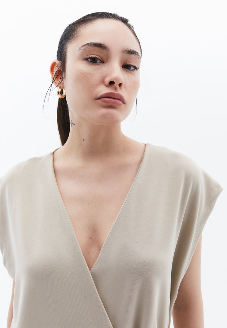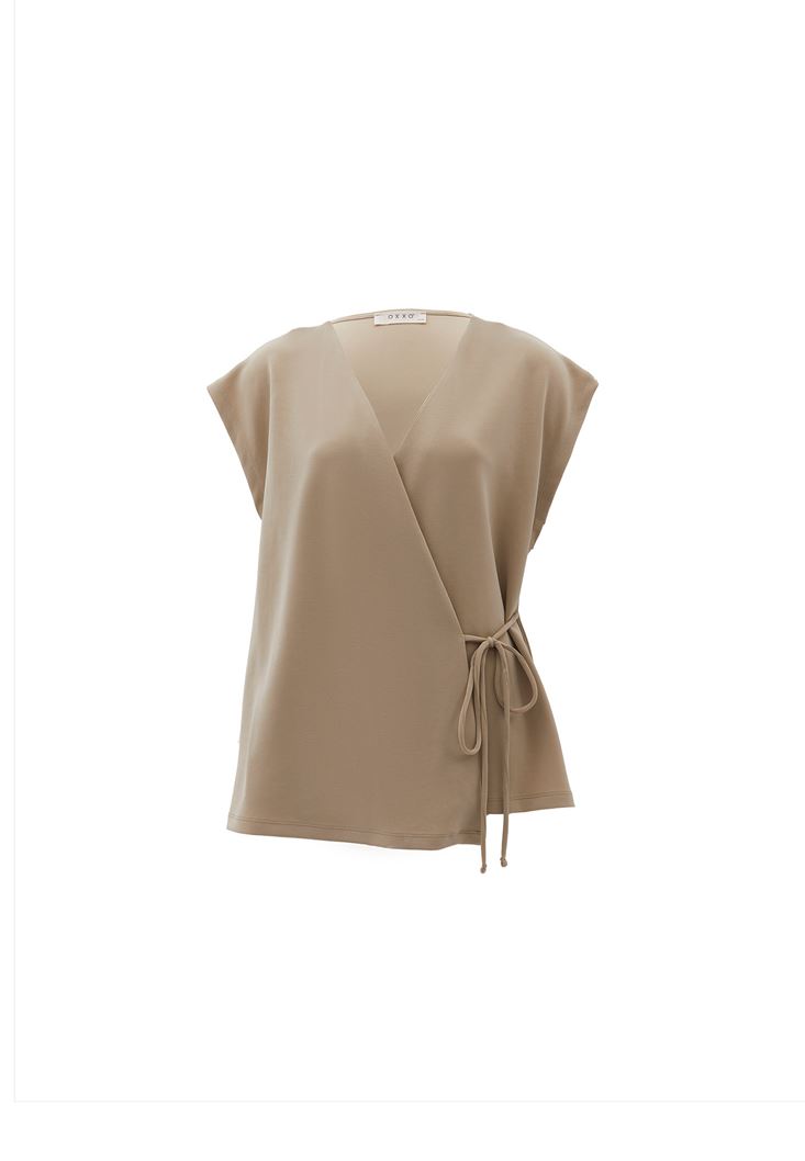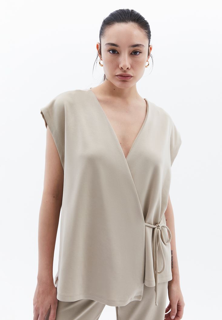 • Bayan Bej Modal Kruvaze Yaka Bluz