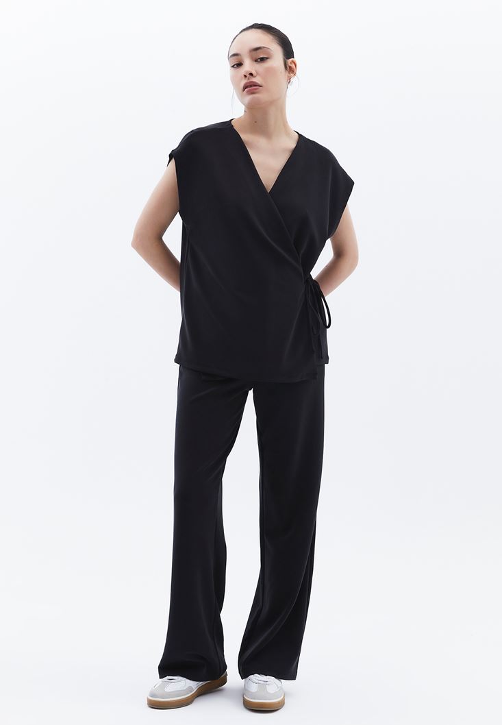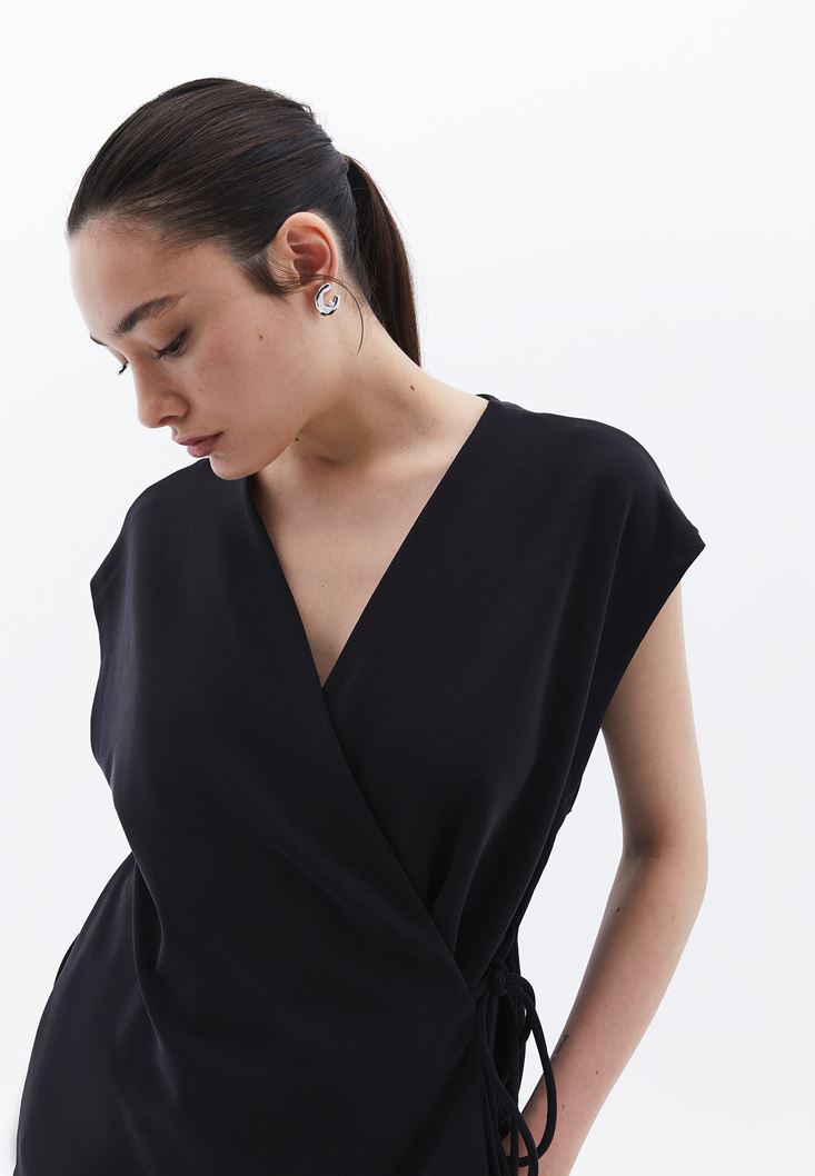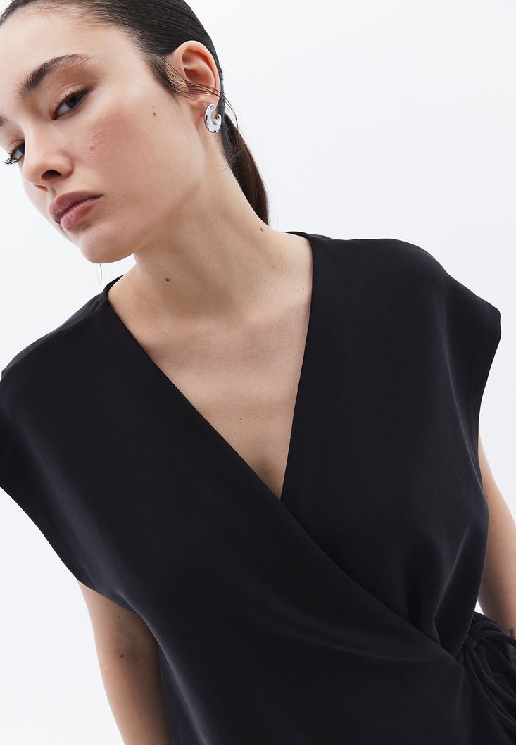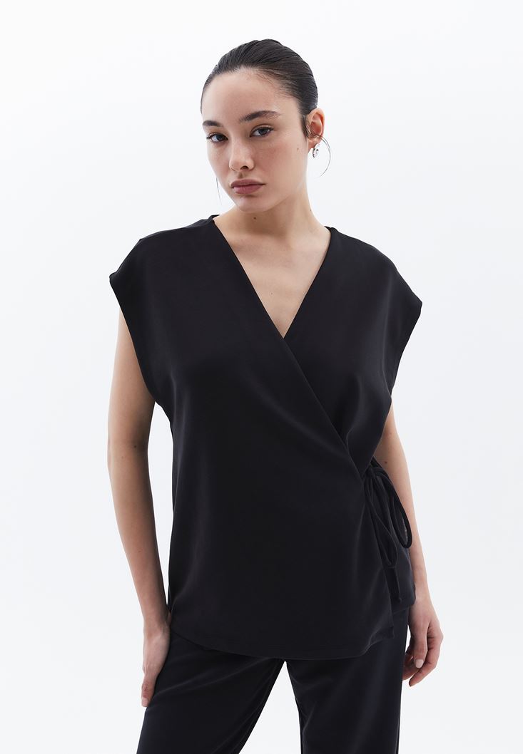 • Bayan Siyah Modal Kruvaze Yaka Bluz