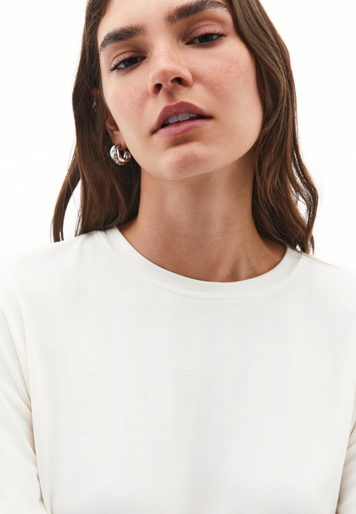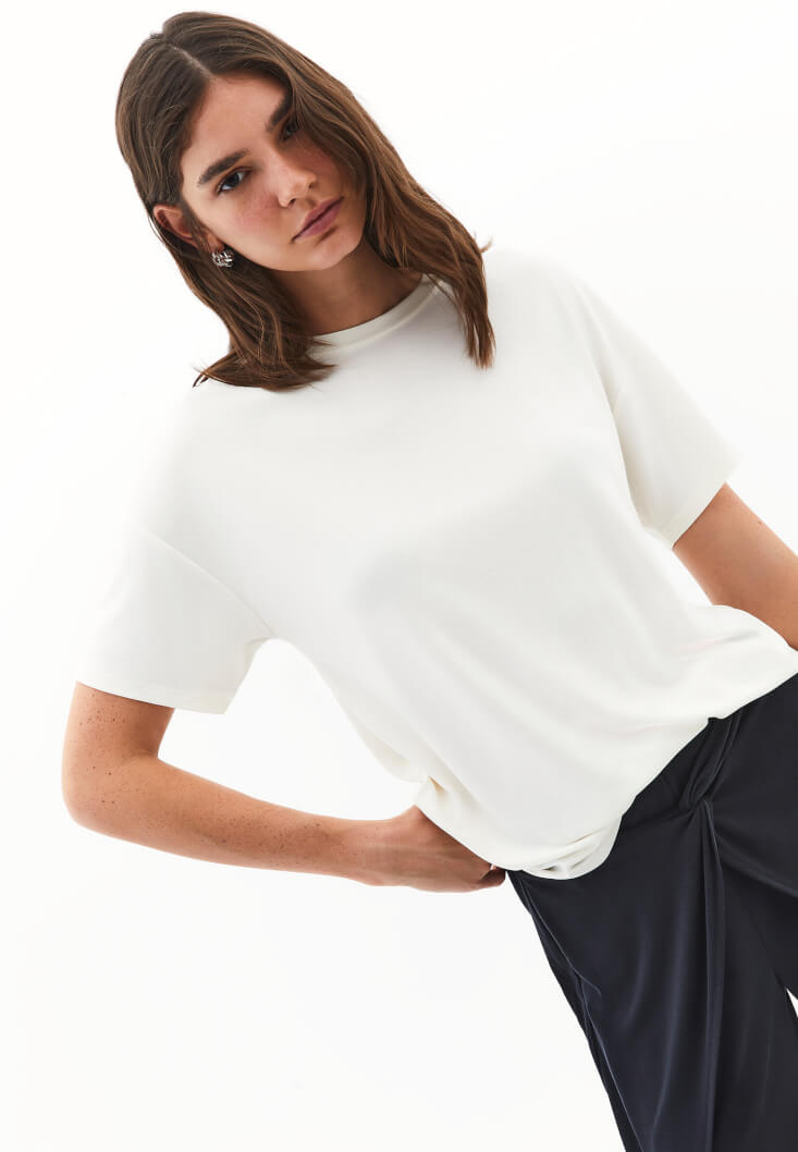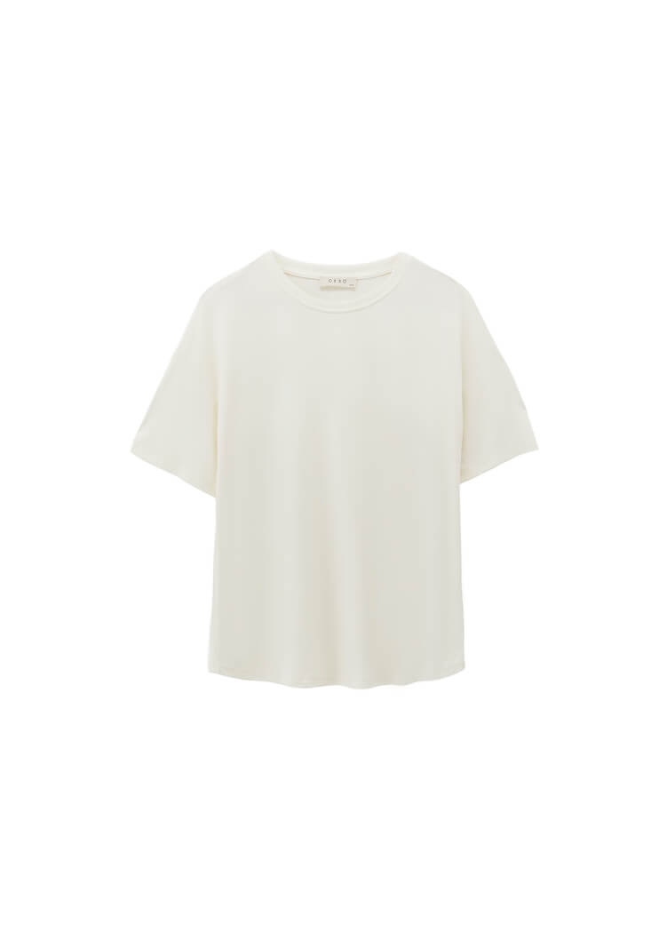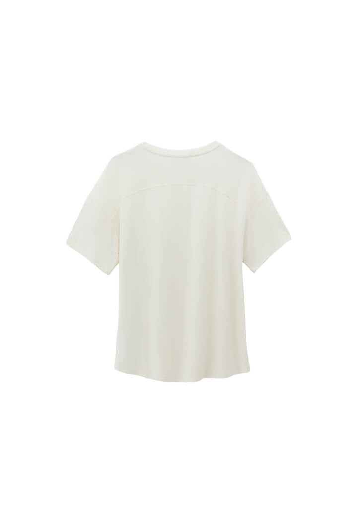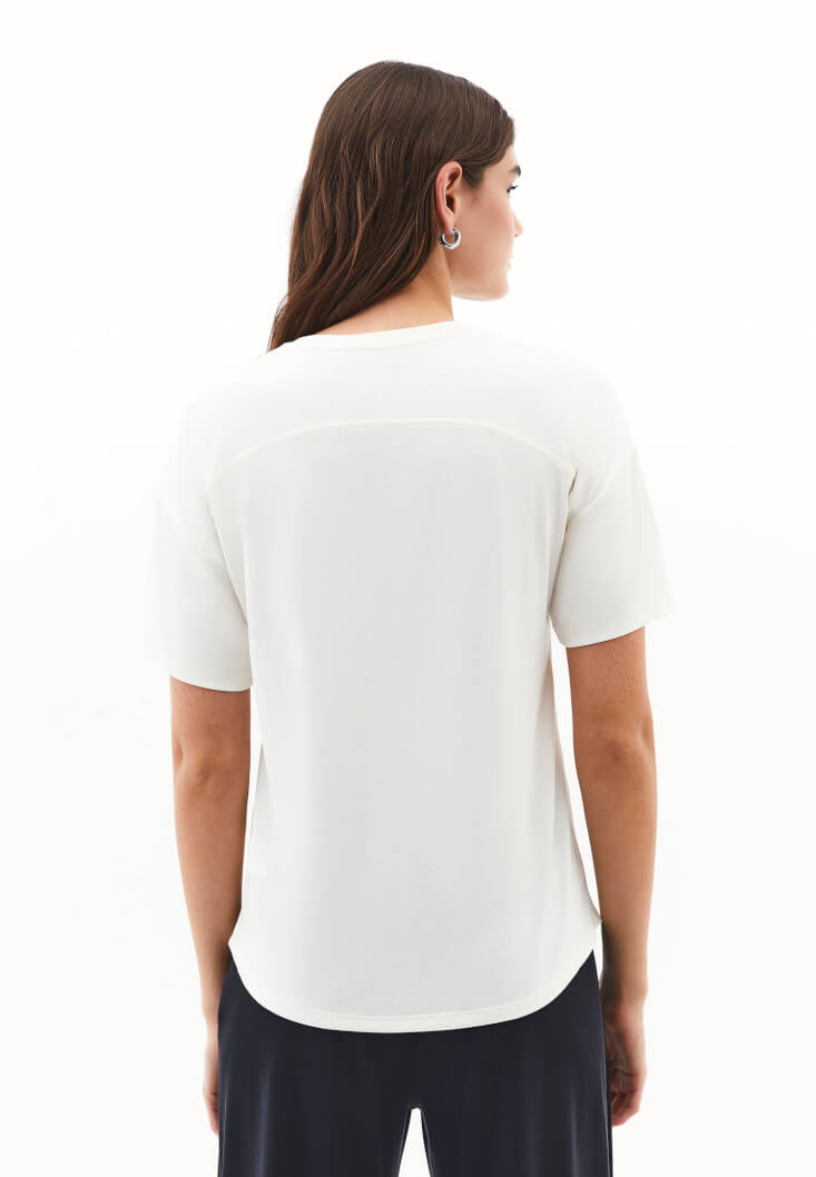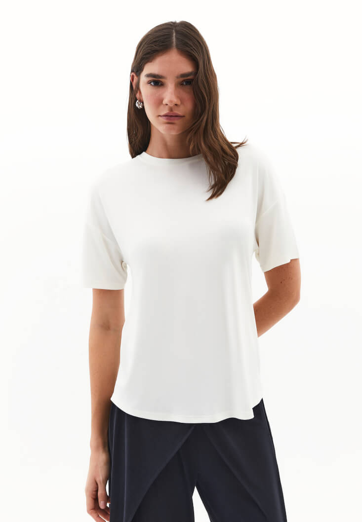 • Bayan Krem Modal Sıfır Yaka Tişört