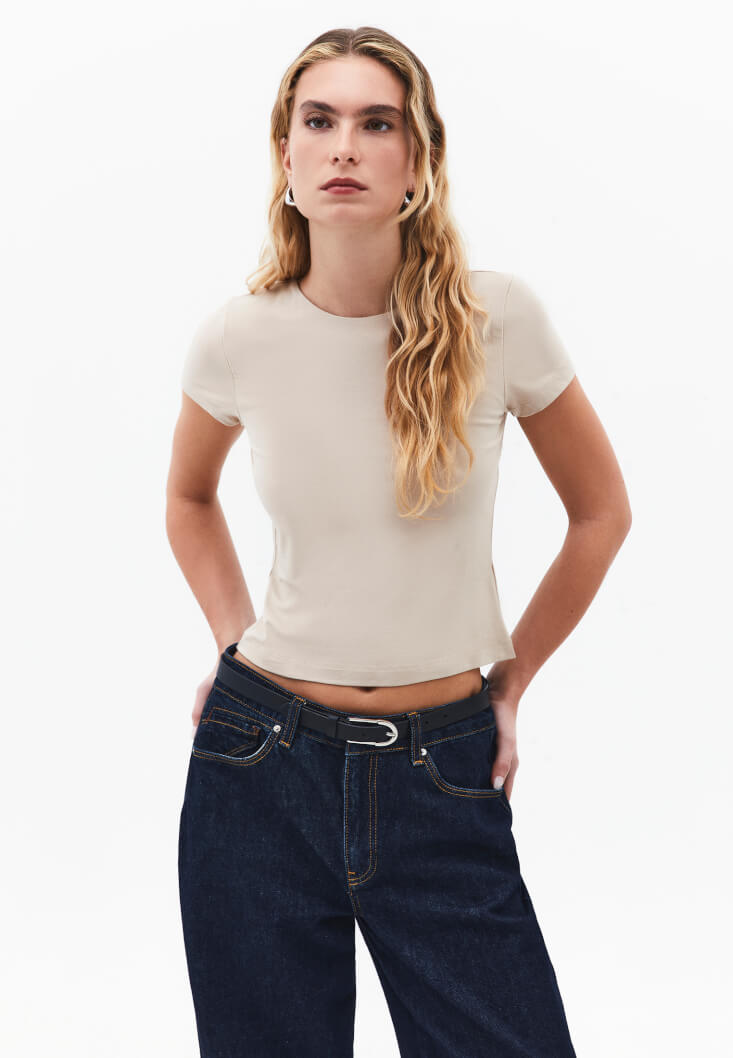 • Bayan Bej Modal Sıfır Yaka Tişört